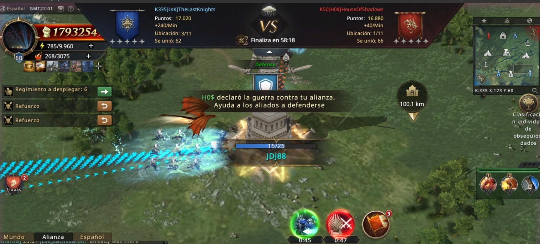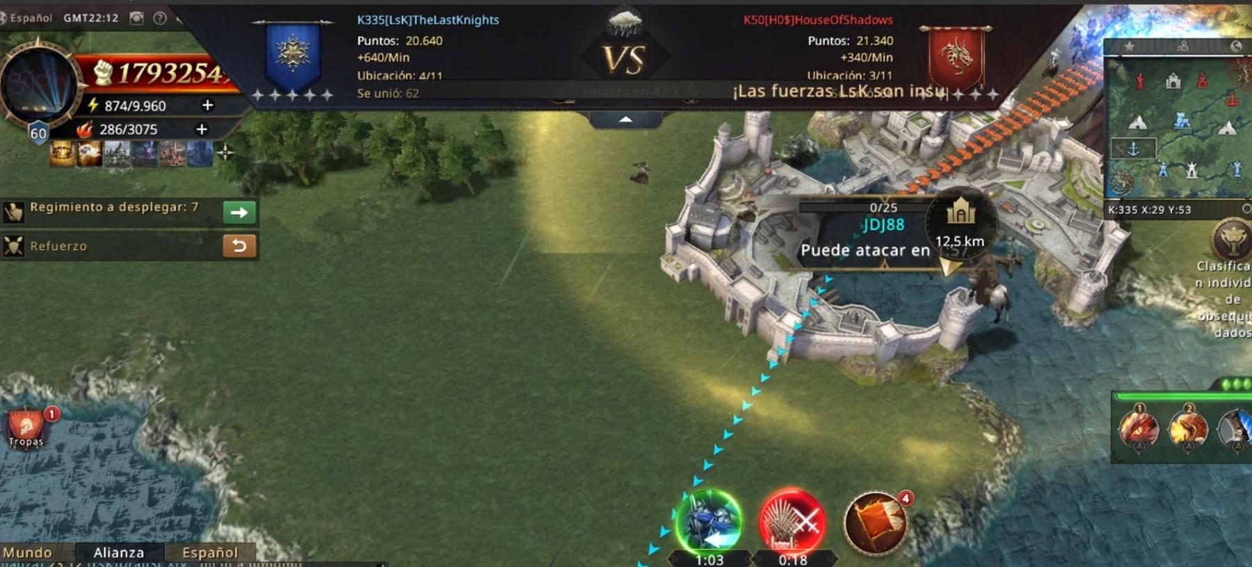 Just as Killer Marta had anticipated, HO$’s infantry leader began using solo attacks and speedups to apply pressure. Thanks to this, he managed to take control of the Warrior Tower. However, Killer Marta knew that this strength was also a weakness: that same player left the tower shortly afterward, creating a window of opportunity that LSK did not miss. With a quick and coordinated response, they managed to retake the Warrior Tower, striking back and reaffirming their dominance.