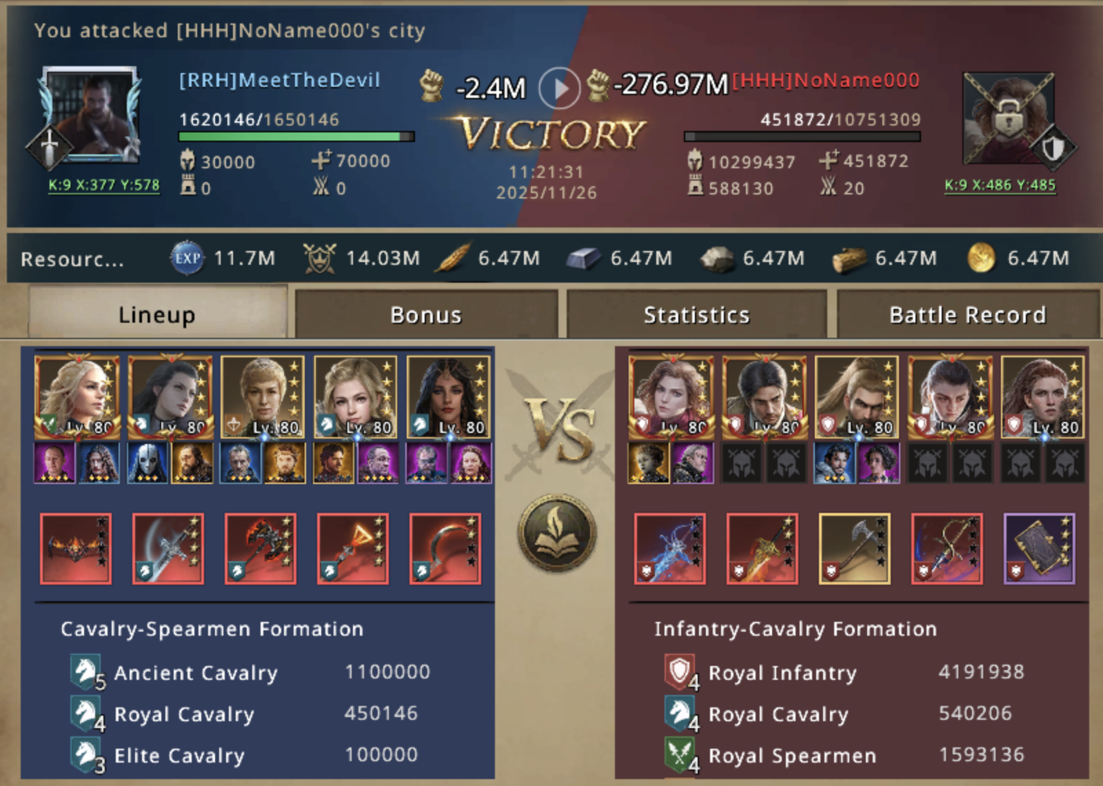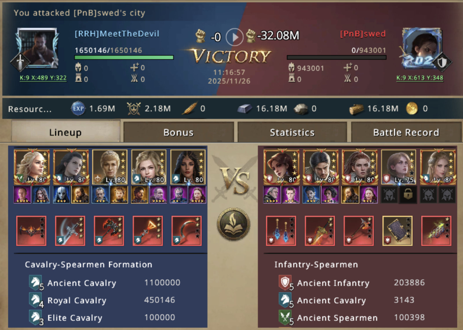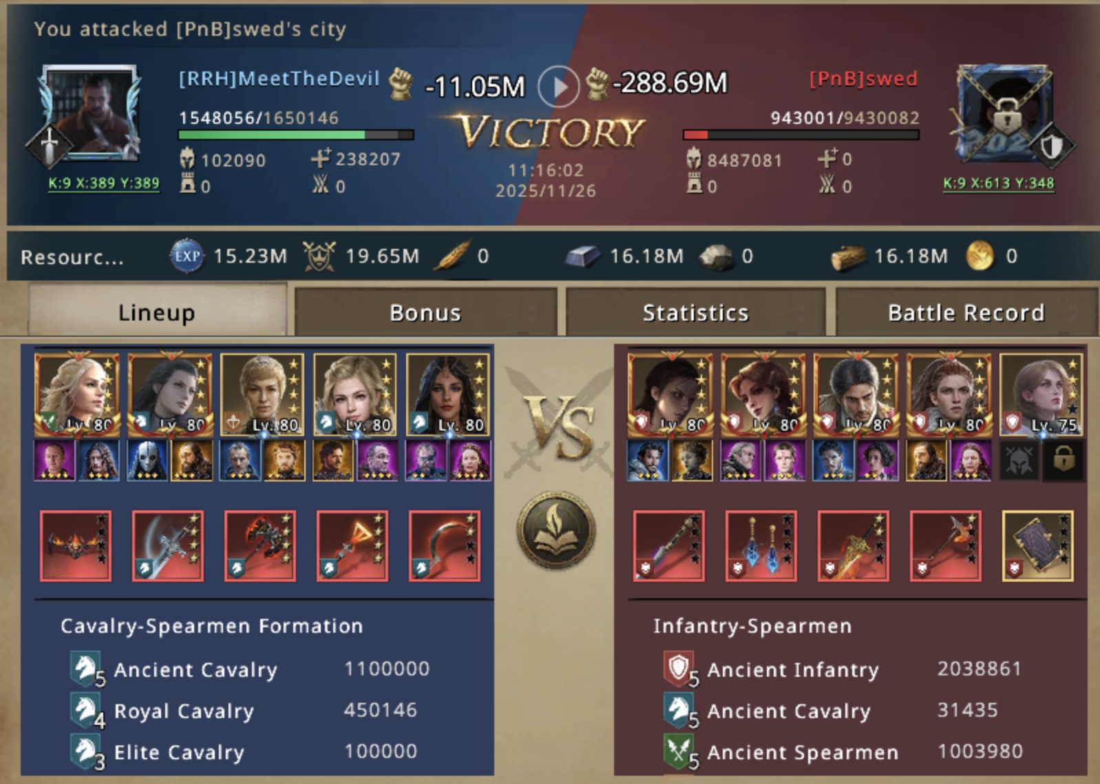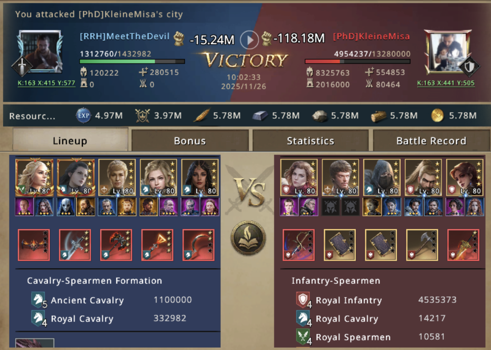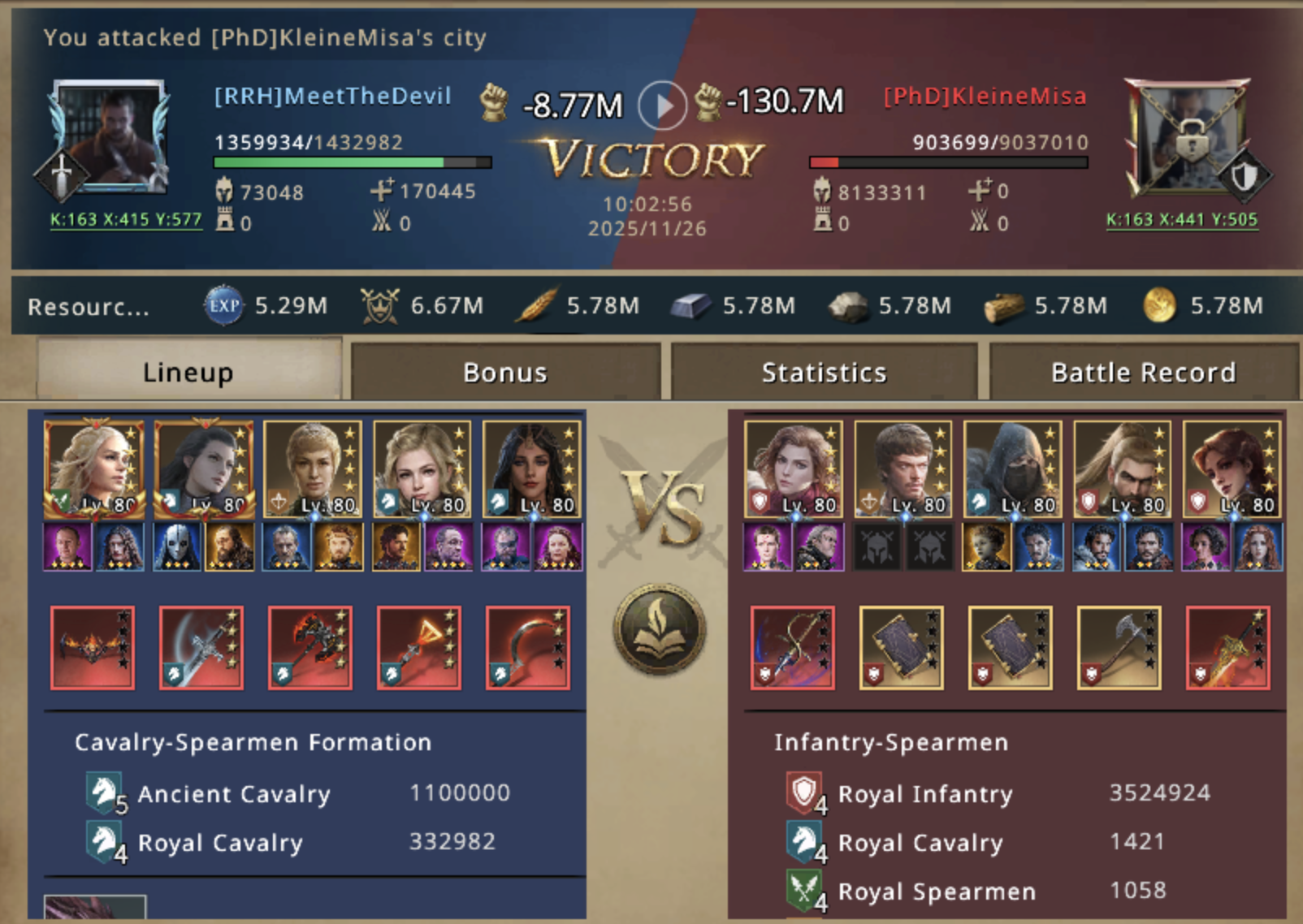The hunt was far from over. Before the dust could even settle in K163, a ping from TASTEIT flashed across MTD’s screen. She had tracked down a massive target in K9, but there was a catch, it was a heavy Infantry fortress. As a Spearman player, TASTEIT knew attacking that castle was a suicide mission for her, but for MTD’s cavalry-focused female synergy lineup, it was a feast waiting to happen.