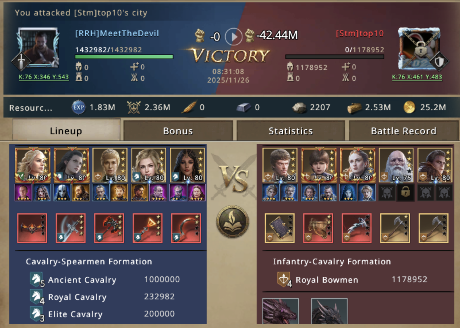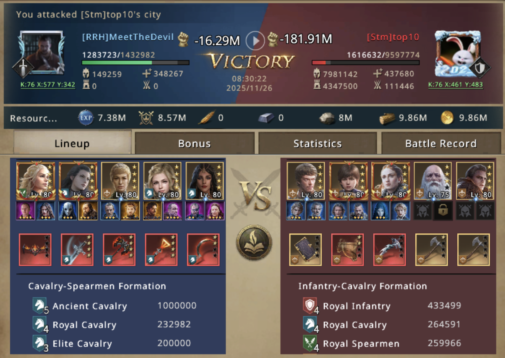 The report came back with a familiar, stubborn profile: 9.5M troops, Bowmen-heavy, sitting in Battle Gear. MTD paused. A Bowman castle is rarely "efficient" to hit. Without a direct counter-mechanique, the trade would be expensive, blood for blood. But at this point, the hunger for battle outweighed the concern for healing speeds or resources. He would take any target he could find. The decision was made.
