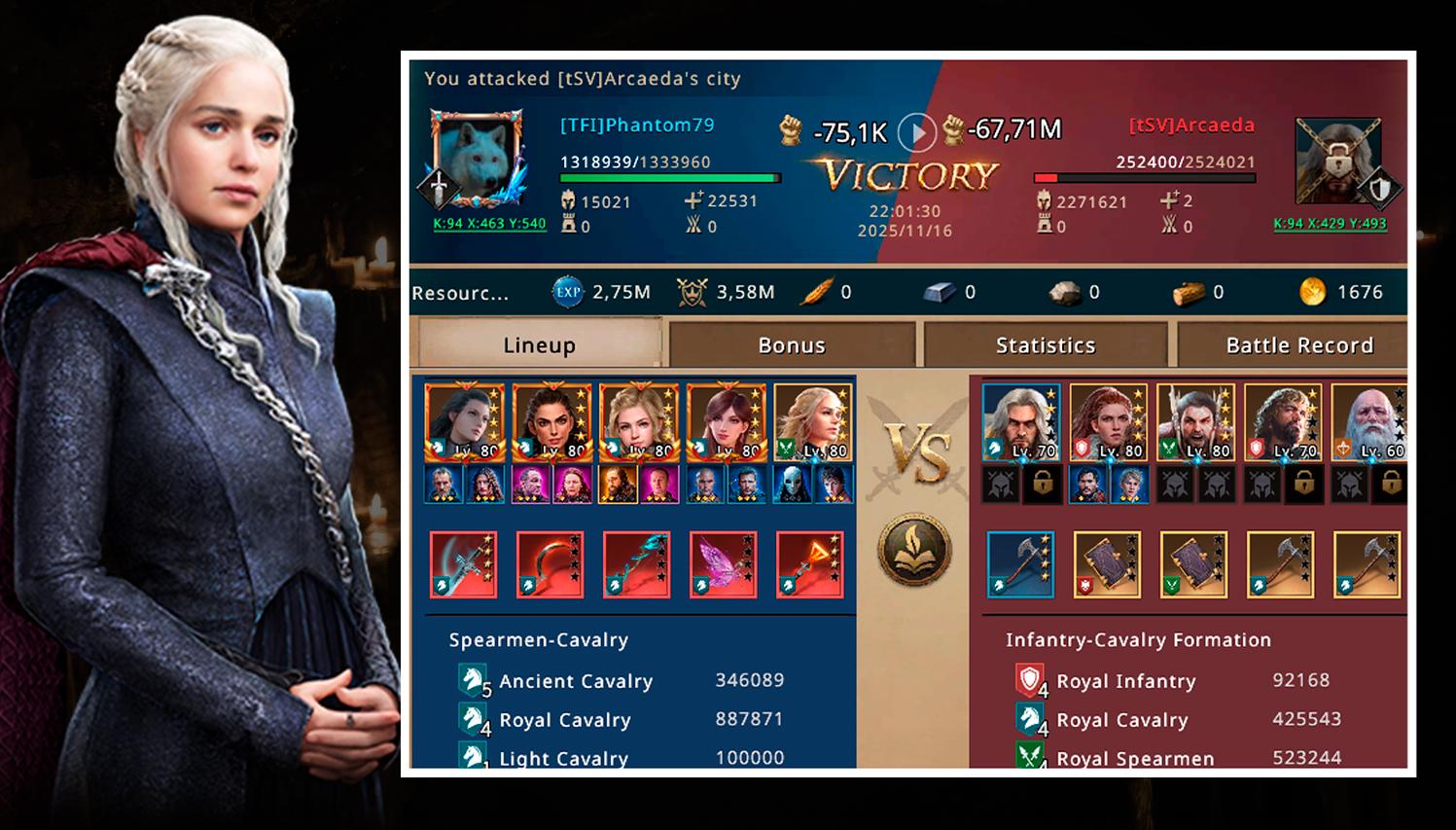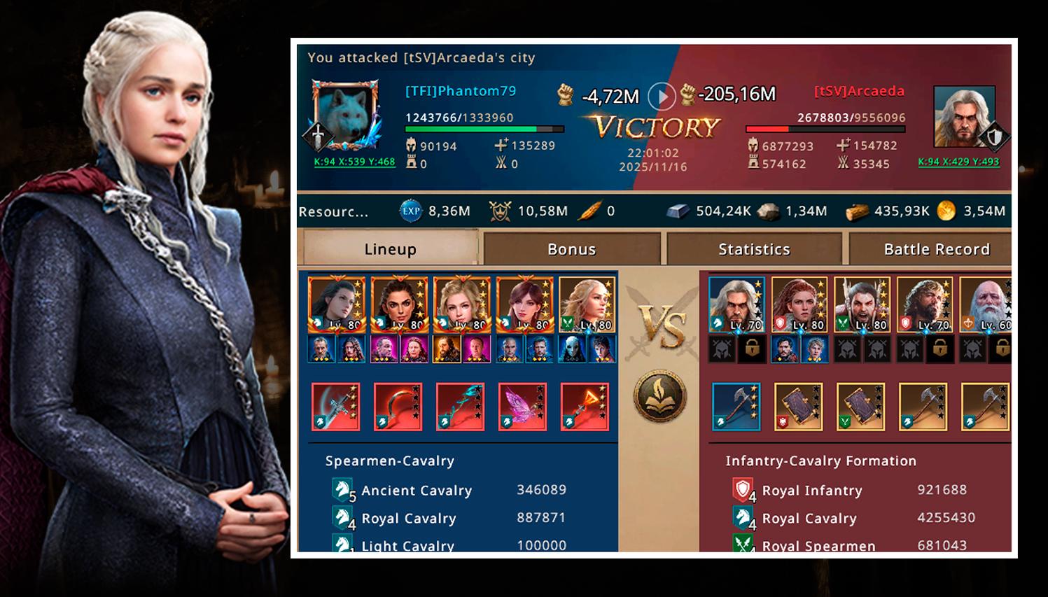 The troops moved before dawn. The strike focused on the outer wall and visible garrison formations. The report arrived shortly after. Phantom lost 90K soldiers while Arcaeda lost 6.8M.