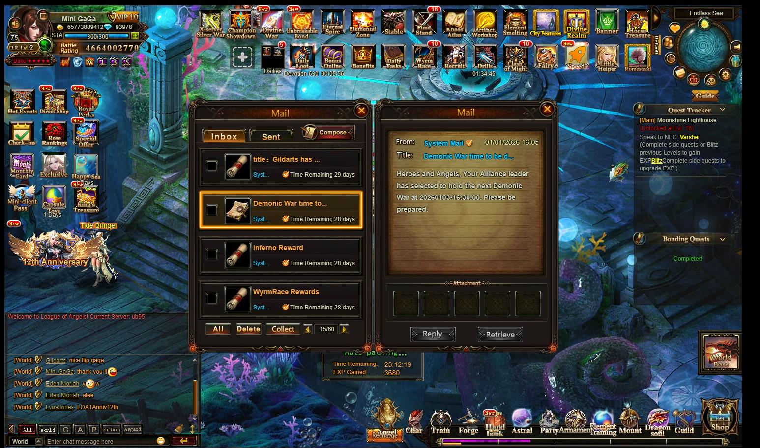 I have scheduled my Demonic War for 1-3-2026 at 16.30 on ub95 PST on 1-1-2026. I am attaching two screenshots, one with the mail confirmation for my scheduled Demonic War and a screenshot with timestamp that my Demonic War is not today but was rescheduled for 1-7-2026 for some reason.