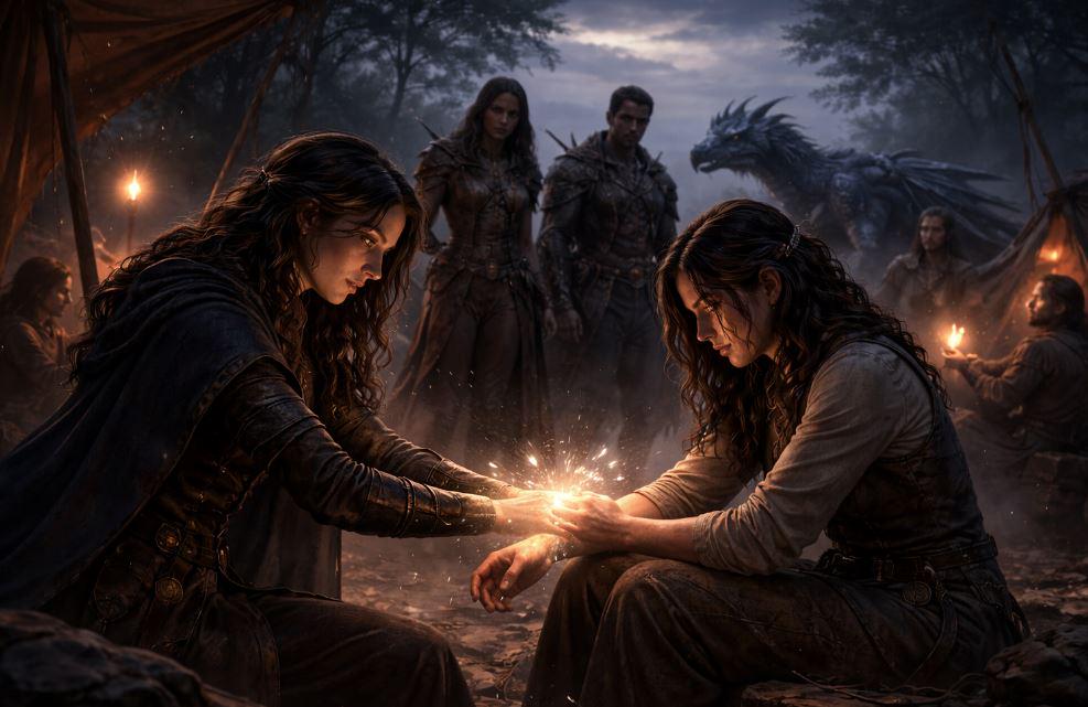 Manco asintió de inmediato, colocándose entre el grupo y el resto del campamento. Lucasta se sentó detrás de Teodora, su calor formando un círculo silencioso de protección.