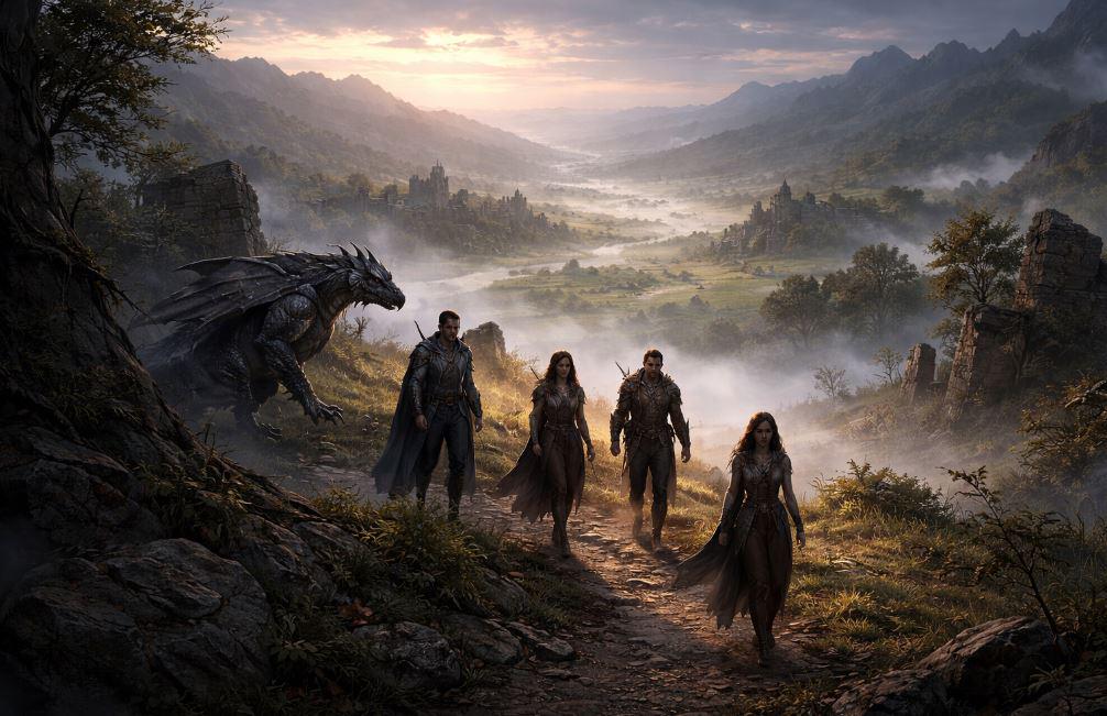 Lucasta avanzaba un poco más adelante, sus alas plegadas con cuidado para no rozar las rocas que flanqueaban el sendero. El dragón se detenía de tanto en tanto, inclinando la cabeza como si escuchara algo que el resto no podía oír. No había hostilidad en su comportamiento, pero sí una alerta constante, madura, distinta a la curiosidad imprudente de su juventud.