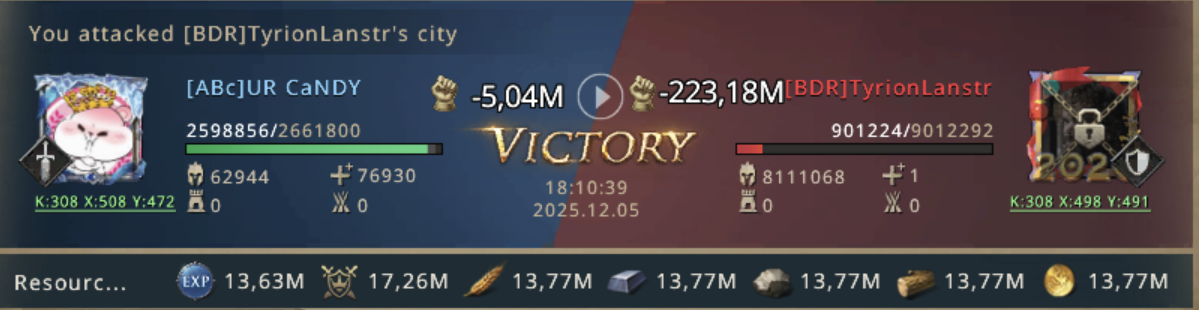 The search that followed was intense, traversing many kingdoms over and over, multiple times a day for a few weeks, close to giving up all hope of finding a target. "Everyone in their alliance must be on alert, just like us." were the thoughts that came to every RoD's member's brain. But when all that search seemed hopeless and only became a routine, the inevitable happened: a rally leader of BDR dropped his bubble right as RoD looked at his castle. It was not a big rally leader, but he was just enough to weaken BDR should it come down to it, TyrionLanstr was going to get attacked by RoD.