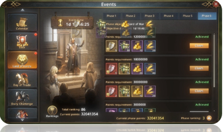 In this adventure, Lady L0ry goes back to hunting for tokens in the Lord of Lords event. She had a scout in K310 who checked in every now and then, and she knew it was time for LoL phase 6. When Lady L0ry hunts for tokens, she looks for servers with castles without bubbles, hoping it won't be too expensive to skip. However, it's not always easy; servers with LoL in that phase are usually more careful and rarely forget the bubble. That day, however, the scout in K310 had given positive feedback, 3 castles with few troops unbubbled.