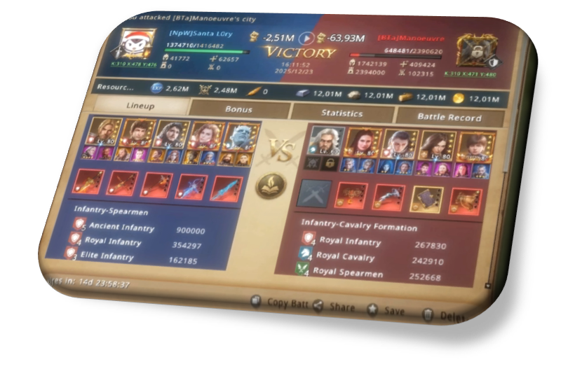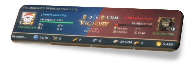 Yeeeeeeee! With those small attacks she had managed to obtain 30 million points and the coveted 3 tokens. How wonderful! She finally felt like she could breathe without fear. Her troops were safe and the points were earned. Now she could study her reports. The first attack had been well executed, quickly and with zero losses. The second attack had also been without problems; they were very few troops of little value. Finally, she analyzed the attack that had most worried her.