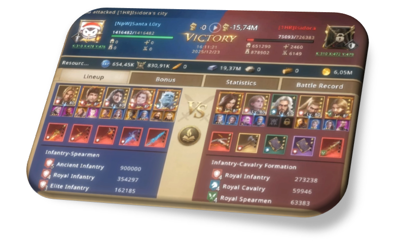 It was a castle that had probably already been hit by others previously; it had too few troops. Who knows who had passed through there before her and had taken out that castle? The formation on the wall was almost entirely Bow, but something was missing; there was no synergy, nor were all the Bow commanders. Lady L0ry wondered what had happened to that castle before her arrival, who knows how many troops it had before. Most likely there had been some T5s, but now there were only a few T4s.