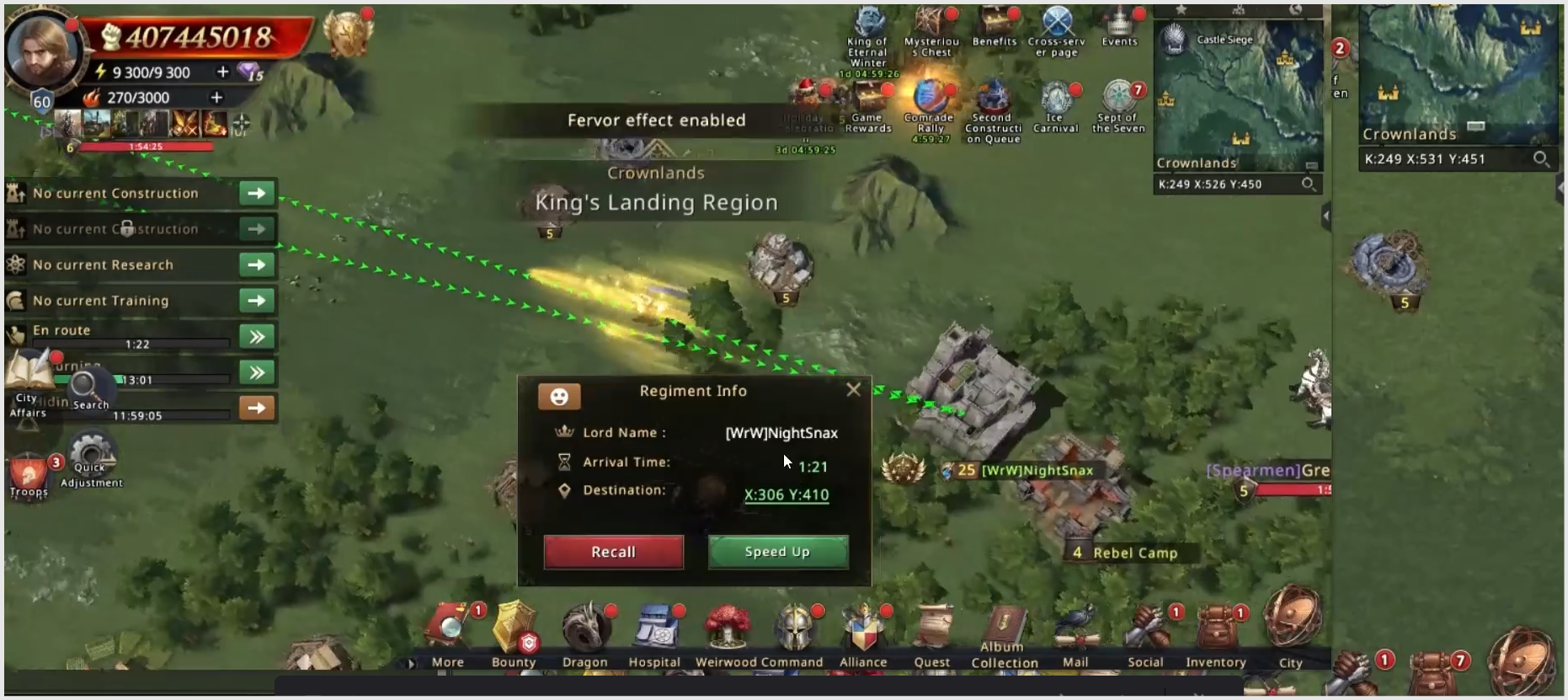 Several kingdoms had already been visited, scouted. At some point, the servers start to feel like you have several groups watching all the low port cost kingdoms. Well, it's actually pretty much like that. So so annoying, that moment after nearly falling asleep, I turned my eye toward K249, a place where some strong BDR and HD! castles are on the King's Landing treeline. I had to do something, I was so bored, so I thought, why not go there with an alt and try trap someone. I did know these players from before; it’s always more fun to chase players with whom you had a little beef earlier.
