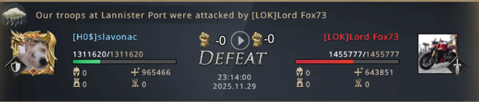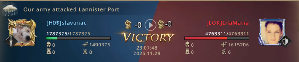 Now the situation is very good for us! We have a points advantage, although LOK holds Targaryen Port and Lannister Outpost in their possession, we have the other Castles which guarantees us that we get many more points than them, and all we need to do is hold on to those few key Castles and we will record another victory, perhaps even easier than expected! In addition to all that, while I was worrying about defending Lannister Port which they expectedly started attacking - my teammates also took Lannister Outpost! However, as it usually happens in such matches - from this moment on, things go in a completely different direction...