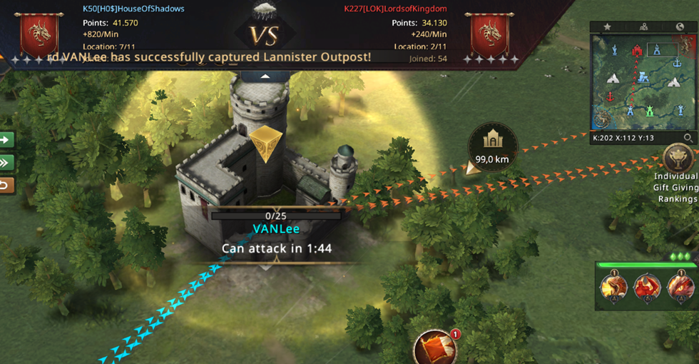 Suddenly, the situation completely changed again and now everything started in our favor again! Although we are only in the middle of the match and although the points advantage is not that big, in reality this was a really big advantage - not only did we ensure with this attack that we only needed one Mine to win, and there were only 10 minutes left until the opening of the Mines, we showed that we can fight even with their strongest player, which now creates additional pressure for them since now even they are no longer sure that they will be able to defend themselves if they take both Mines! And to make things even more favorable for us, VANLee made sure that he also managed to take the Lannister Outpost!