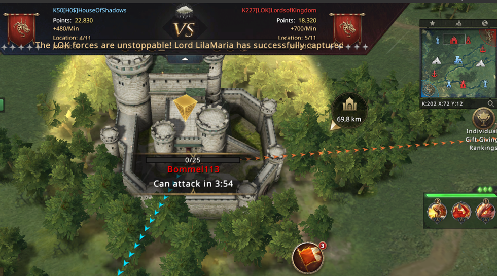 However, LOK plays smart! When they saw that they were in danger of being left without that Castle, they activated a one-minute protection!