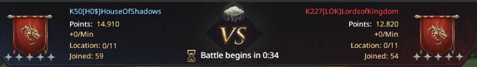 To make a quick recapitulation of the previous part of the match, before the opening of Casterly Rock, perhaps the key battle in the whole match: after we managed to take Lannister Port from them, we re-established the points superiority and at this moment we are getting more points than them, so even though our advantage is not big, we still enter the continuation of the match more easily than them. Although we haven't seen all of their strongest players in action yet, we've had some battles where we've shown that we can handle them so that even in an open fight we're not without a chance. The situation is very simple - the goal is to be ahead in points before the opening of Mines, and since we are already getting more points than them at this moment, winning Casterly Rock would mean a lot to us! Maybe that would guarantee us the final victory! However, not everything is that simple... Unfortunately, I have to mention again that debuff I have had this entire season, which makes any fight for the Castles much more difficult for me, so even though I managed to take control of Lannister Port, it is only a matter of time before I lose it, which is why we have to be very careful in the rest of the match. I even suggested that we make a swap and let someone else take over that Castle, but there was no time for that, the races for Casterly Rock will start soon! If we take CR, then even the very likely loss of Lannister Port would not be so terrible, at least in terms of points. On the other hand, if we lose CR - then the situation could completely change, for the worse, and in a very short time! Luckily, we still had Oberdon at our disposal if things went wrong, but even he is not omnipotent, as we could see in the match against LsK, so it is not wise to rely on him to bring us victory on his own. We have to win CR at all costs!