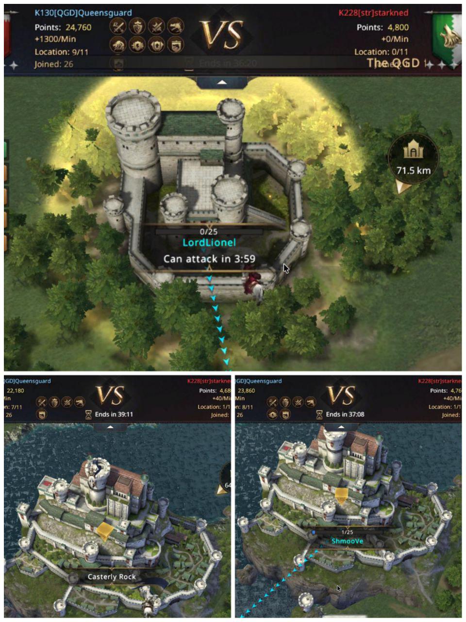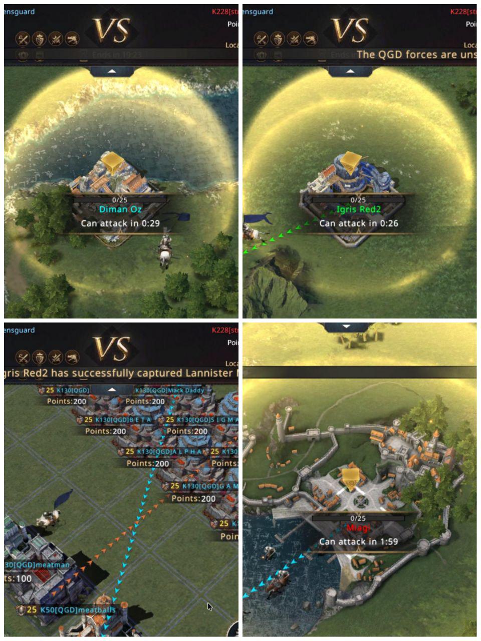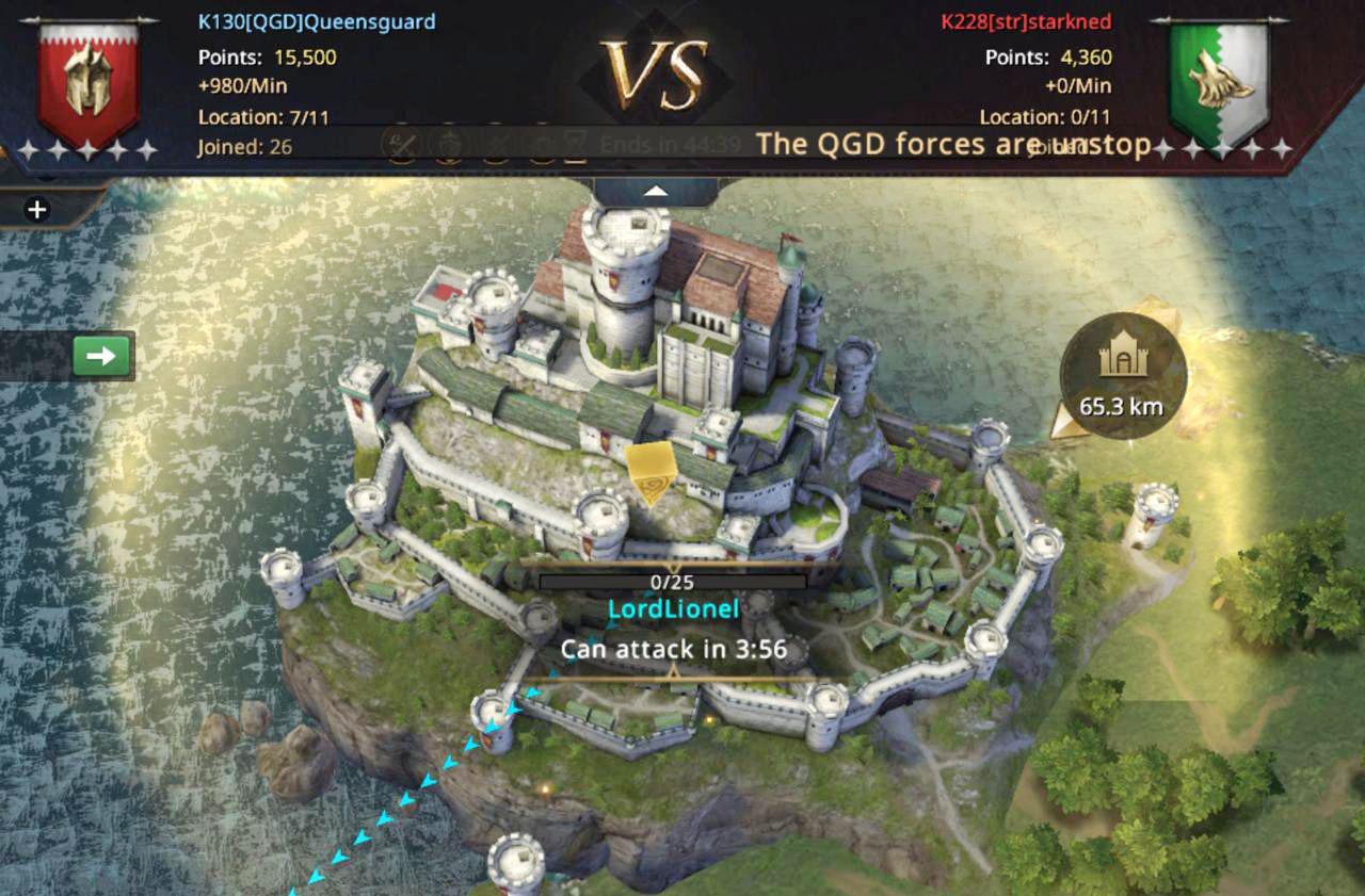 The first regiment sent by his stronghold sent off LordLionel from Castelry Rock. The next second, ShmooVe took it back and ensured it stayed in QGD’s hands. Within the same timeframe, LordLionel took that opportunity to take the Lannister stronghold Miagi had controlled. QGD wanted to let him get some points sure but not at the cost of their own game.