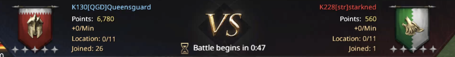 Lots of words, lots of speaking and none of them even payed attention to Casterly Rock opening up and Miagi makes the change from his outpost to an unattended Casterly Rock which is now his for the next 4 minutes because of first capture benefits. Goes back to what we said before, QGD became overconfident, felt like Miagi couldn’t much so they just forgot about the match at all and now they might not get full rewards out of this game just because they couldn’t keep focus.