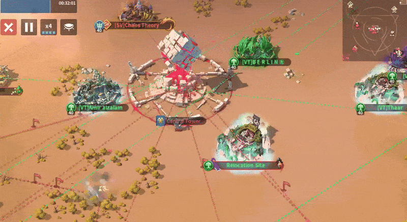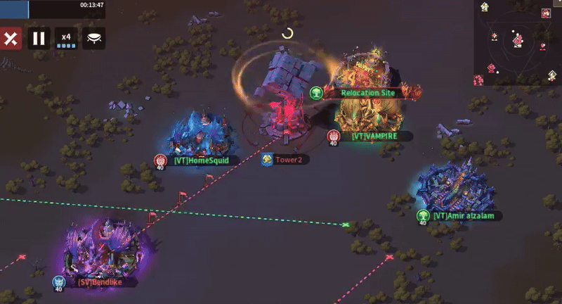 In the opening minutes, VT failed to destroy an SV relocation at their home tower after the guard sent only two attacks instead of the required three. Despite being far from the tower and facing two nearby guards, the SV player was allowed to steal the tower uncontested, as the guards did not even attempt to pressure or attack him. It took until the 11 minute mark for a third VT player to relocate in, zero the invader, and destroy two incoming relocations. Two more SV relocations still completed uncontested, but VT ultimately stabilized and recaptured their home tower at the 14 minute mark.