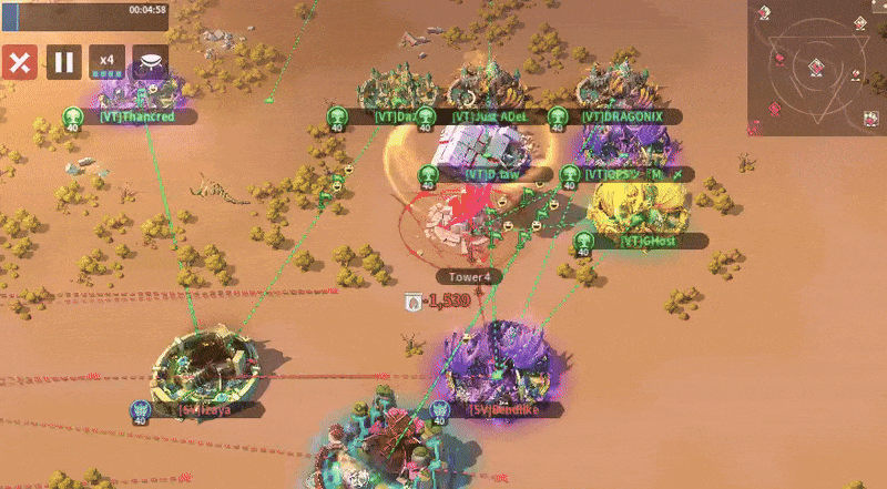 SV opened Tower 4 by blocking two of their own relocations, immediately putting themselves at a disadvantage. VT focused fire on a frontline target and quickly zeroed him. Seven SV latecomers began relocating toward the tower, but VT blocked one and proceeded uncontested. VT captured the tower at the five minute mark, securing their third tower and the match’s win condition. They then blocked five additional relocations, destroyed another, and nearly simultaneously wiped the remaining SV presence at Tower 4. Poor garrison discipline left SV players taking free hits from all directions, with several unable to mount any attacks before being deleted.