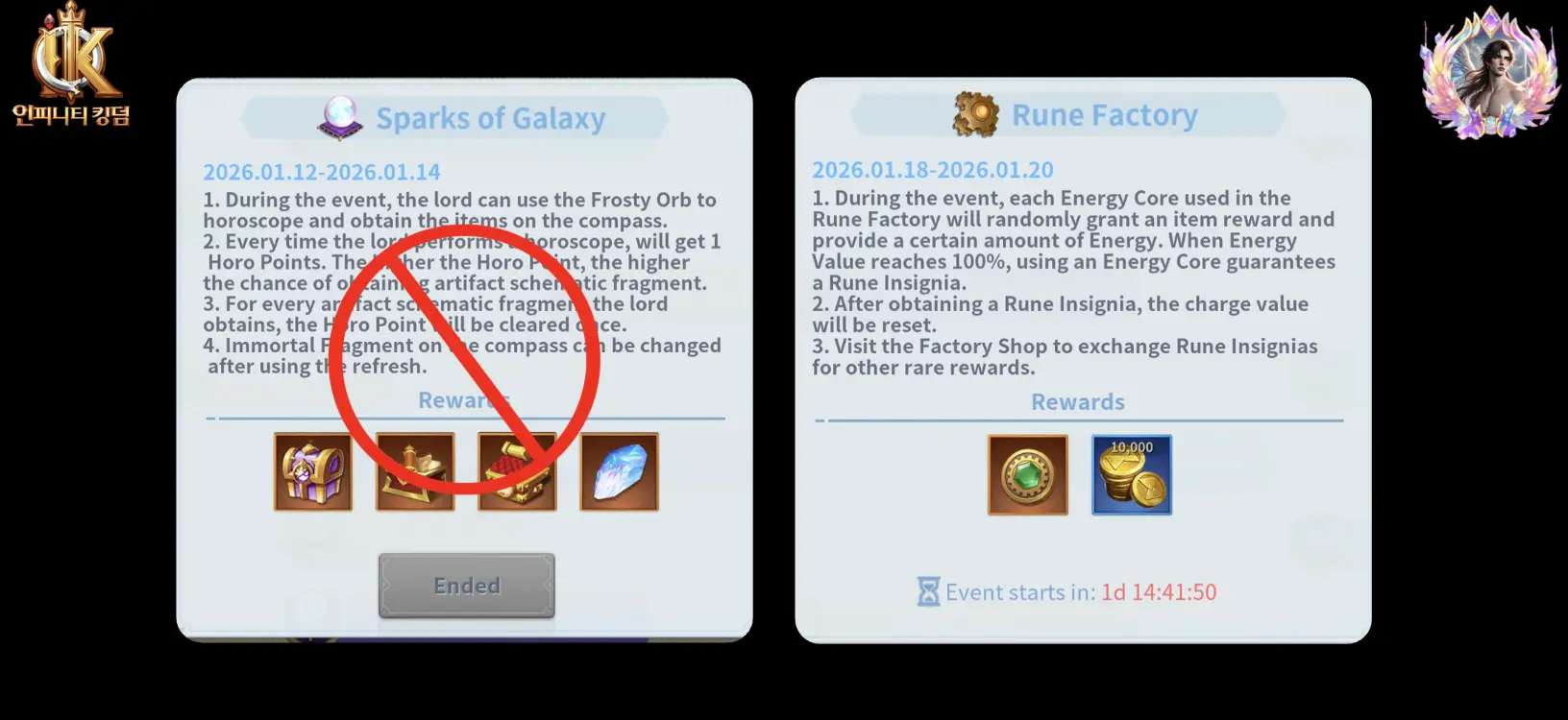 What is noticeably absent, at least for now, is breadth. Sparks of Galaxy distributed value across multiple axes at once: shards, Dragon Essence, and incidental progression that benefited a wide range of accounts. Rune Factory, by contrast, appears tightly scoped. If you are not interested in what the Inferno Insignia shop offers, the event has little to say to you.