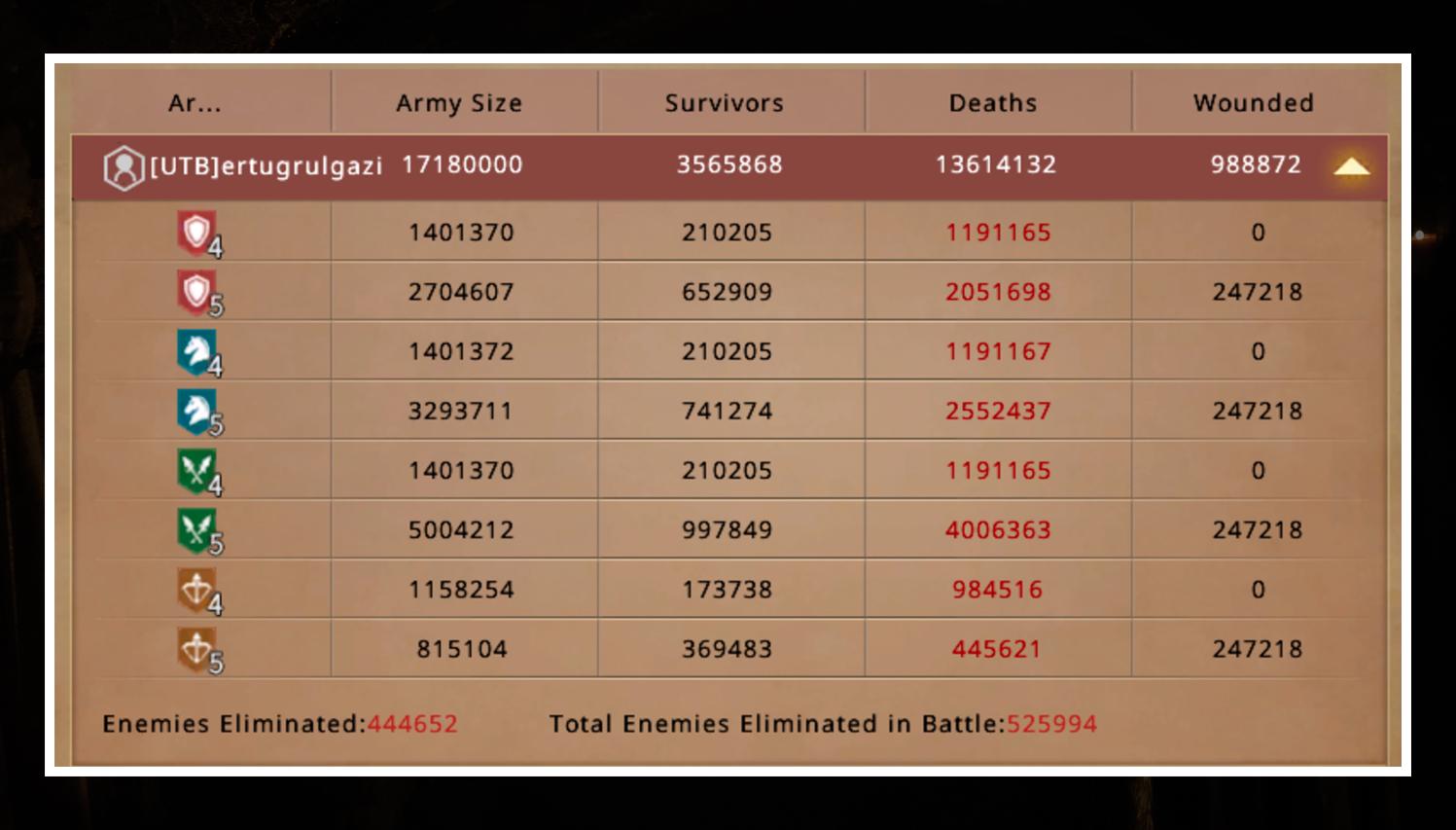 By analyzing the report more closely, it is possible to see that we fought against almost 11 million T5 troops, which makes the result even more impressive.