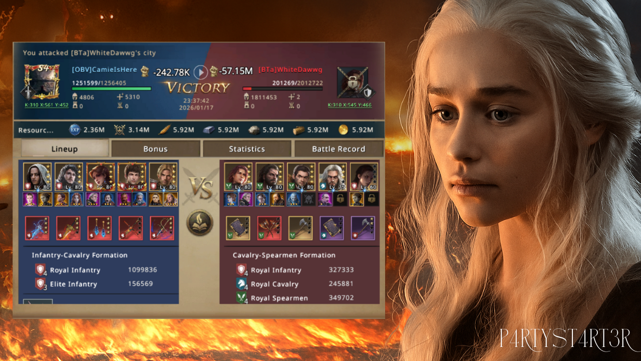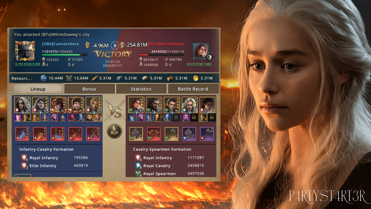 In kingdom 310 Camie spotted two unbubbled targets right next to each other. This was a lucky find for any hunter. The first was Sir Freddie from the 1HR alliance. He was a cavalry player with all troop tiers except for T5. He was wearing rebel gear and he had no meatshield to protect his core troops. The second was WhiteDawwg from the BTa alliance. He was a spear player with a very similar setup. He also had rebel gear and no T5 troops in his castle. Both were big targets and both were worth the risk. Camie moved fast and got ready to hit before they could react or put a shield up. She checked her march speed and made sure her commanders were correct for the first hit.
