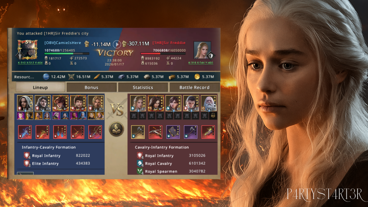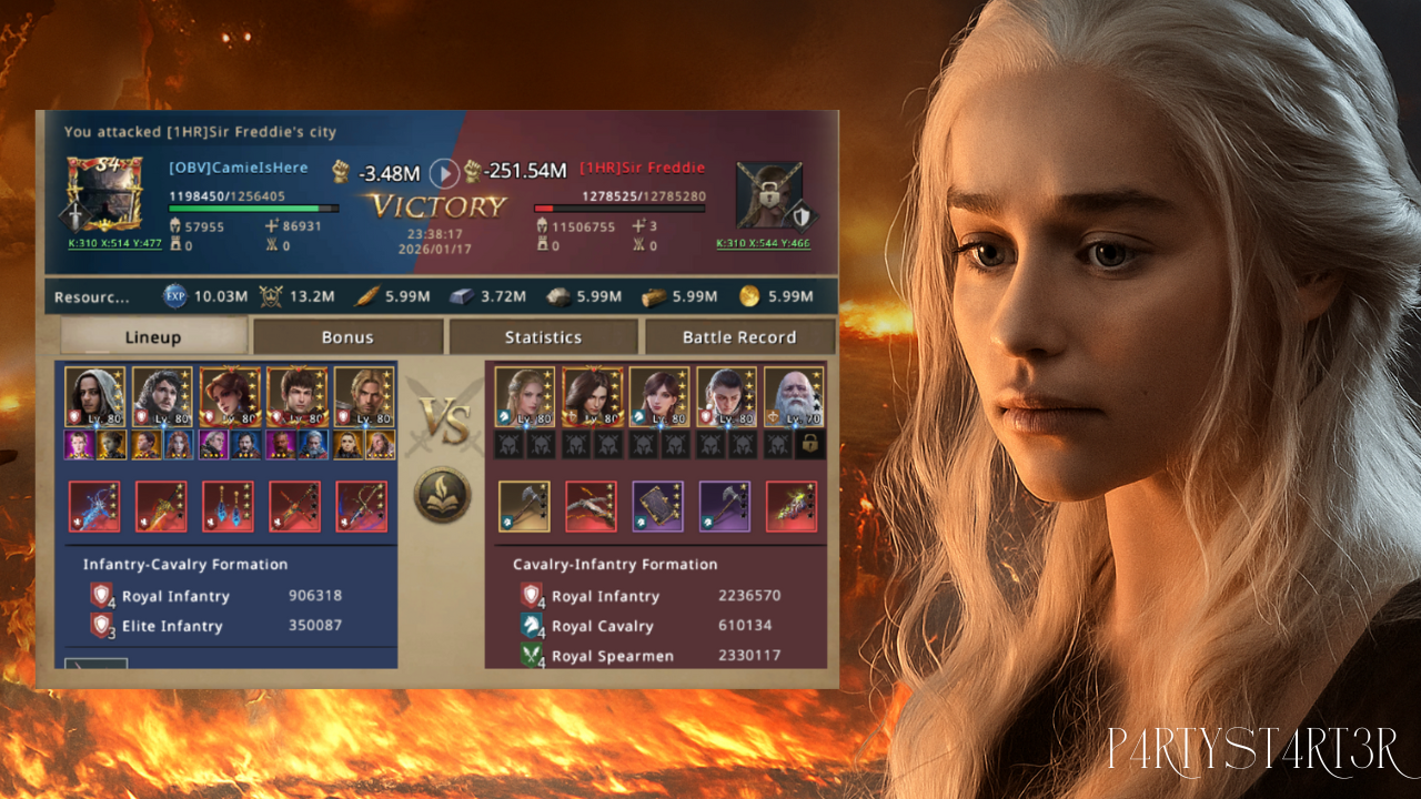 Sir Freddie changed his gear after the first hit. He put on his fight gear to try and stop her. Camie saw the gear change on the map. She did not care if he had better stats now and she did not overthink it. She just sent the second solo march at him. She was confident in her army. The hit landed and the troops were destroyed and she took his lord. Sir Freddie was zeroed out. She finished the job just like she planned to do. She did not have heavy losses.