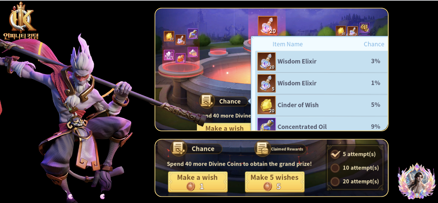 The event cadence remains unchanged. Wisdom Well still runs multiple days per week, and bundle pricing is largely the same. What has changed is how randomness translates into long-term progress.