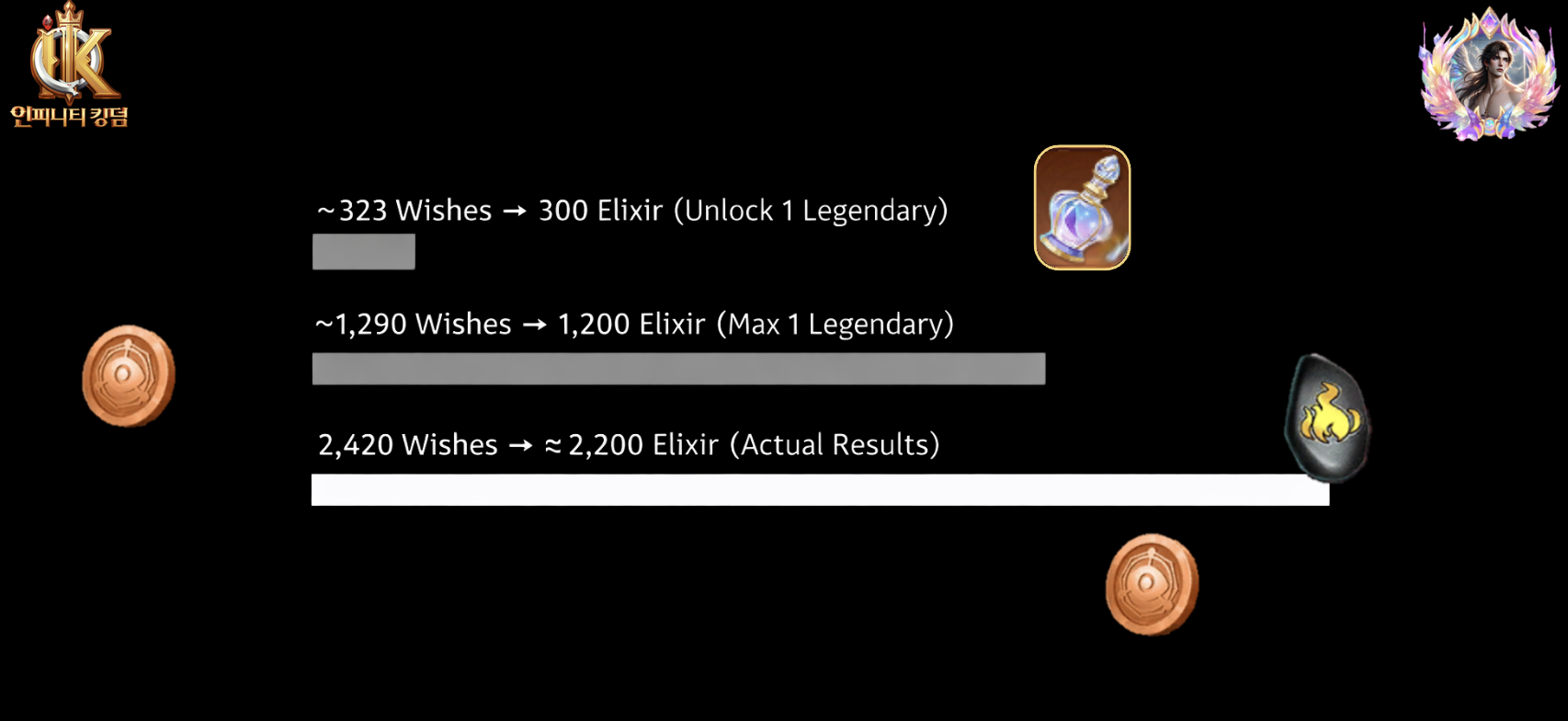 - 5-Elixir hits matter at scale. They don’t feel impactful on individual pulls, but over 2,400 wishes they account for a meaningful share of total Elixir. They smooth the curve between jackpots exactly as intended.