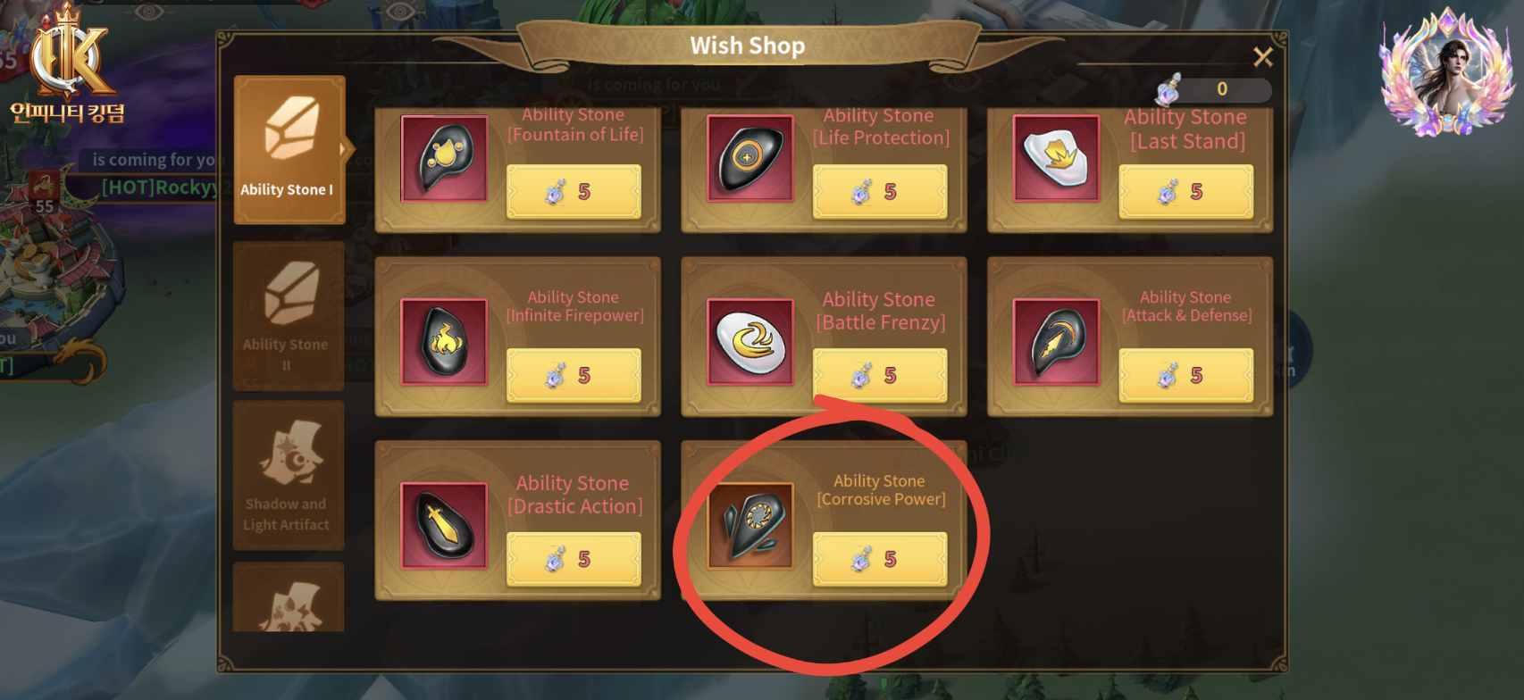 Legendary skill progress now flows through Wisdom Elixir, a universal currency obtained from Wishes and spent in the Wish Shop. Instead of hoping to land the right skill at the right moment, players accumulate Elixir and convert it into exactly the stones they need.
