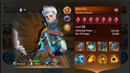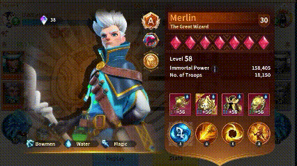 Merlin is set up for damage, not survival. His ultimate hits the whole enemy team and benefits from debuffs already in play. Annihilation and Death Breath add repeated group damage, while Poison Thorn targets strong frontline attackers and reduces their healing. This setup expects Merlin to do damage quickly rather than last a long fight.