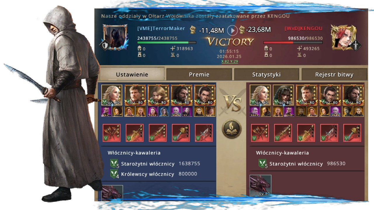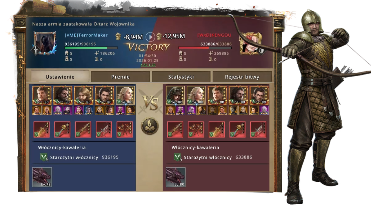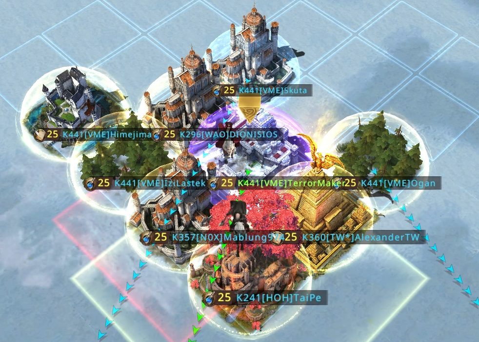 Running multiple battles simultaneously is a grueling experience. Mistakes, lack of communication, crisis situations... and that's only the first fifteen minutes of an hour-long fight in the Arena of Honor. However, the first capture of one of the Towers boosted morale. Although victory celebrations were still far away, the first brick had already been laid. The castle army needs strength to break through the numerous enemy defenses, and reinforcements from Warrior's Altair can provide that strength.