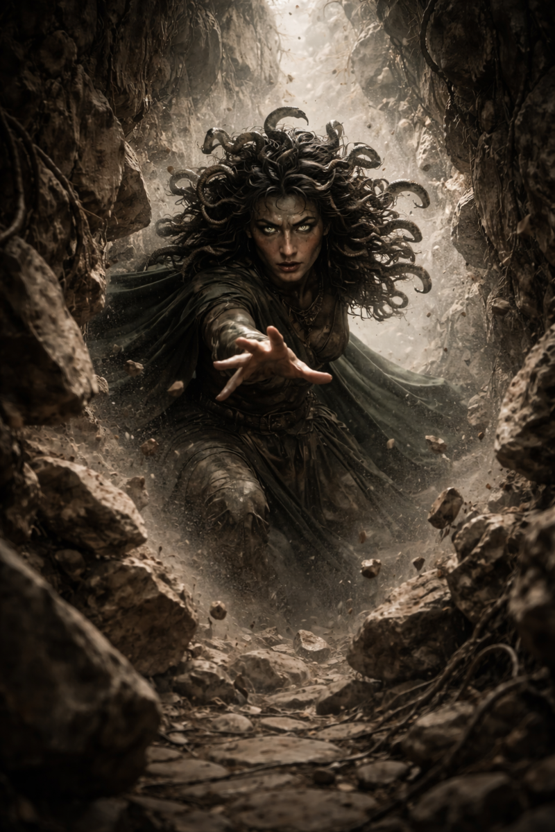 Medusa felt it like a blade drawn across her spine. The ground around her lurched, not guessing this time but reaching. Stone surged with urgency she had never felt before, dragging her attention forward whether she willed it or not.