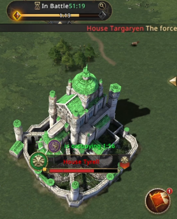 Once the occupation was completed, the building phase started and Tominy, as the team commander, decided to go once again with military camps in an attempt to occupy at least one Clan Castle if not 2. The strategy proved to once again be successful as with the first NPC attack the House Tyrell's Clan Castle fell into the Targaryen's hands and within 20 minutes of relentless siege, the House Greyjoy had no choice but to surrender their Clan Castle too.