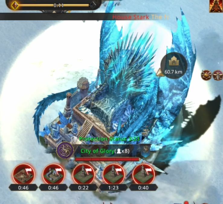 Right after the opening, the strongest warriors from the teams tried to flex their solo capabilities and went charging at each other, kicking each other's out until King Goran managed to stabilize the defenses with a few well-timed reinforcements from the other team members. Once the other teams noticed they're solos have become useless they immediately started the rallies, 2 for each House led by the strongest warriors in their roster. It didn't take more than a few seconds for the rallies to fill and in a matter of minutes, they were at the City of Glory gates ready to challenge King Goran's ownership. The battle that took place between the rallies and the city's defenses would remain in the history of Westeros as one of the bloodiest battles that ever took place, troops falling on each side by millions just to be replaced by the reinforcements sent from the clan castle. The rallies were failing to conquer the city but that didn't stop the other teams from keep sending them and a back-and-forth battle that kept everyone on their toes continued for most of the remaining time of the round.