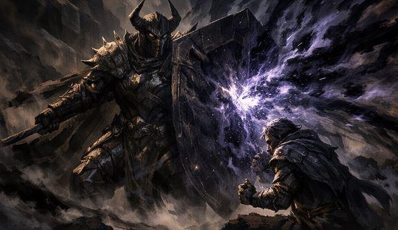 Frente a él, sobre una plataforma de piedra negra, ardía una llama oscura, sin calor ni luz real. A su alrededor se alzaban figuras armadas: los Hijos del Umbral Roto, una orden fanática que creía que el mundo debía ser devuelto al caos primigenio, donde ninguna estructura, ni reino, ni fe, ni ejército, pudiera sostenerse.