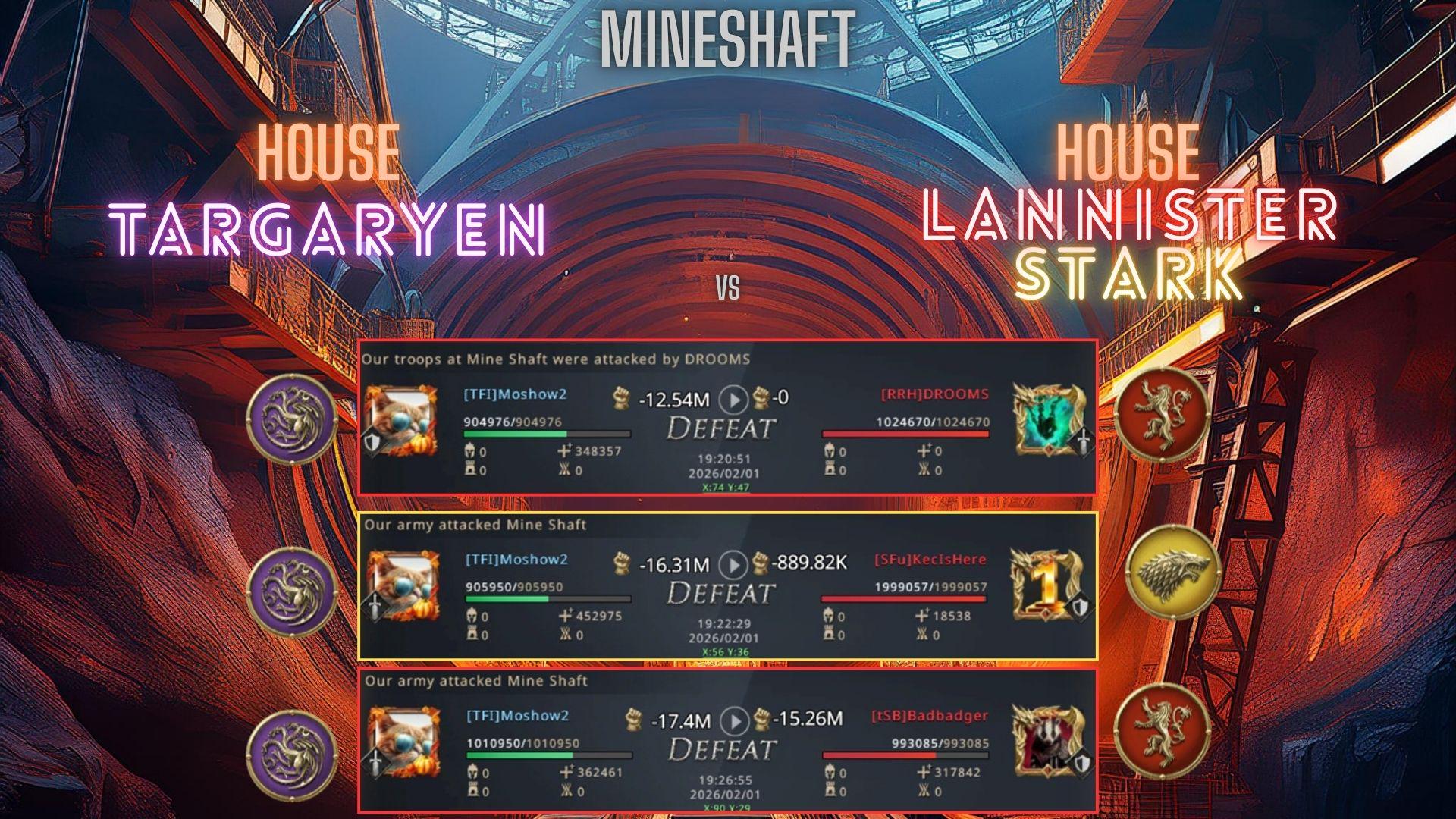 The Glory City opened its doors and immediately House Lannister made their move, “great job filling my rally, the others were too slow, we will hit first,” Badbadger of House Lannister was their rally leader but he knew once they took the Glory City the hard part would begin. “Looks like our rally will hit last, this is perfect for us, those two will hit each other and we will beat the winner,” Lady Anibas didn’t plan this but it worked out and indeed it was House Stark that would now control the Glory City once all the rallies hit. “We had two rallies going towards the Glory City but both lost, those spears from House Stark are going to be a problem,” BIESS didn’t like where things were heading but he still had hope for a second-place finish at worst. The lead between House Stark and House Targaryen who now found themselves in second place was 10k but that could be overtaken with help of the Mineshafts. Can House Targaryen stop House Stark from fully capturing the Glory City and capture more Mineshafts than House Stark, seems a tough task but the fire in Moshow2 could be the catalyst House Targaryen needs.