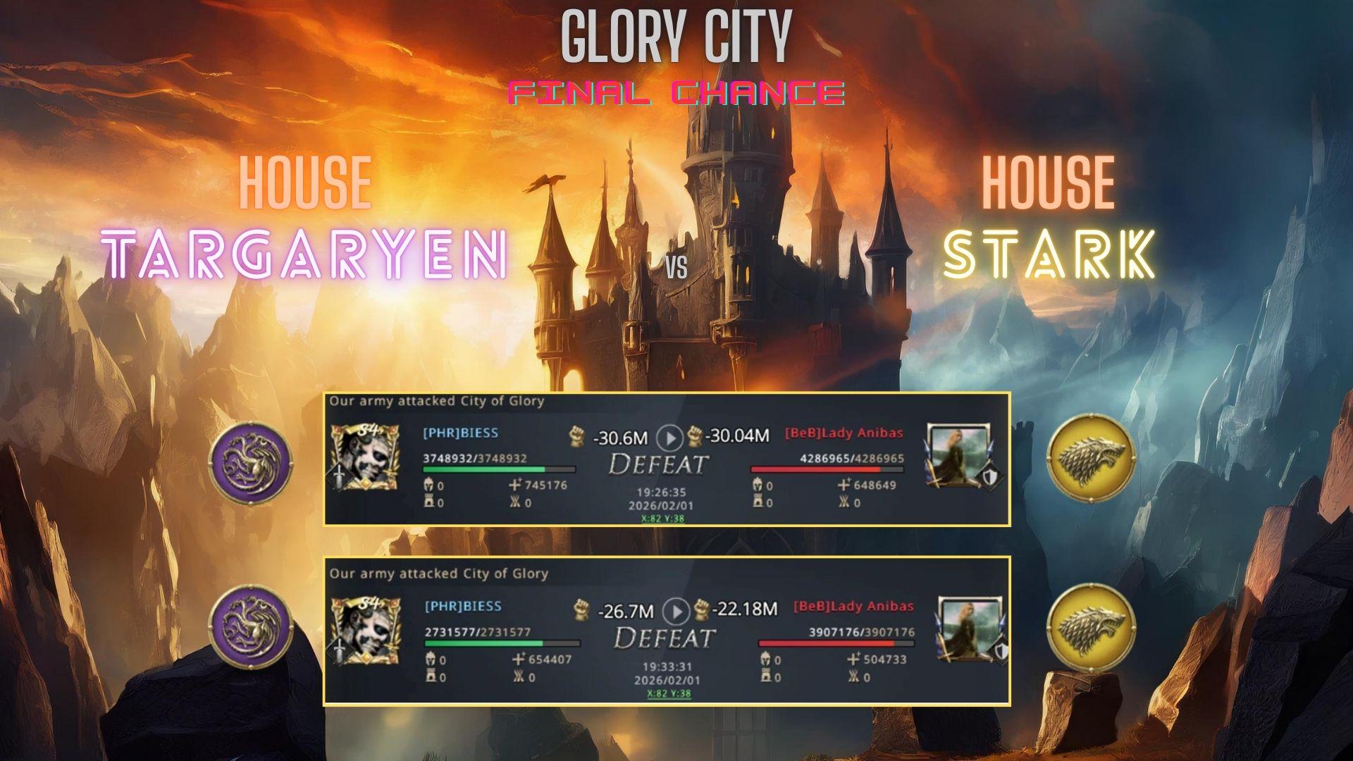 While both House Lannister and House Targaryen reeled at losing the Glory City, there was still time to take it back, “this is our last chance, second place is secured but we can still win,” BIESS could see Moshow2 had lost all hope for his first win of the season but he hadn’t given up yet. The final rally or so they thought was going towards the Glory City, the Mineshafts were now empty this was on the only way to gain more points. “House Lannister have given up, so have the others, it’s up to us now, march forward,” BIESS watched as his rally crashed against the walls of the Glory City, all his hopes and dreams crashed with it as his troops that survived made the walk of shame back to their city. “The rally was so close, we nearly won that, there’s no time to actually fully capture the Glory City but I want to try again,” BIESS was angered by the result of the first rally, he couldn’t believe it. In the end House Stark won the second rally and the bragging rights for the rest of the match.
