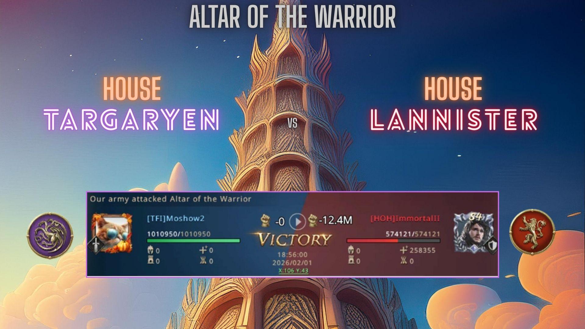 The first point of action came at the opening altar duels, “If we keep House Lannister busy defending what they really want which is the Altar of the Warrior, perhaps they will forget about their Altars of the Maiden,” Moshow2 began his assault on House Lannister but it wasn’t long before House Stark started poking House Targaryen which forced them to pull back from House Lannister’s zone. “Which ever House attacks first we can go through the back door and cause havoc,” Lady Anibas was playing defensively, she ordered her team mates to defend first and strike only when their opponents overextend. As the battle for the altars raged on, House Stark had gained a small lead over House Lannister due to capturing their altars first but the gap between House Lannister and House Targaryen had grown over 2k due to the first capture points of the Watch Tower.