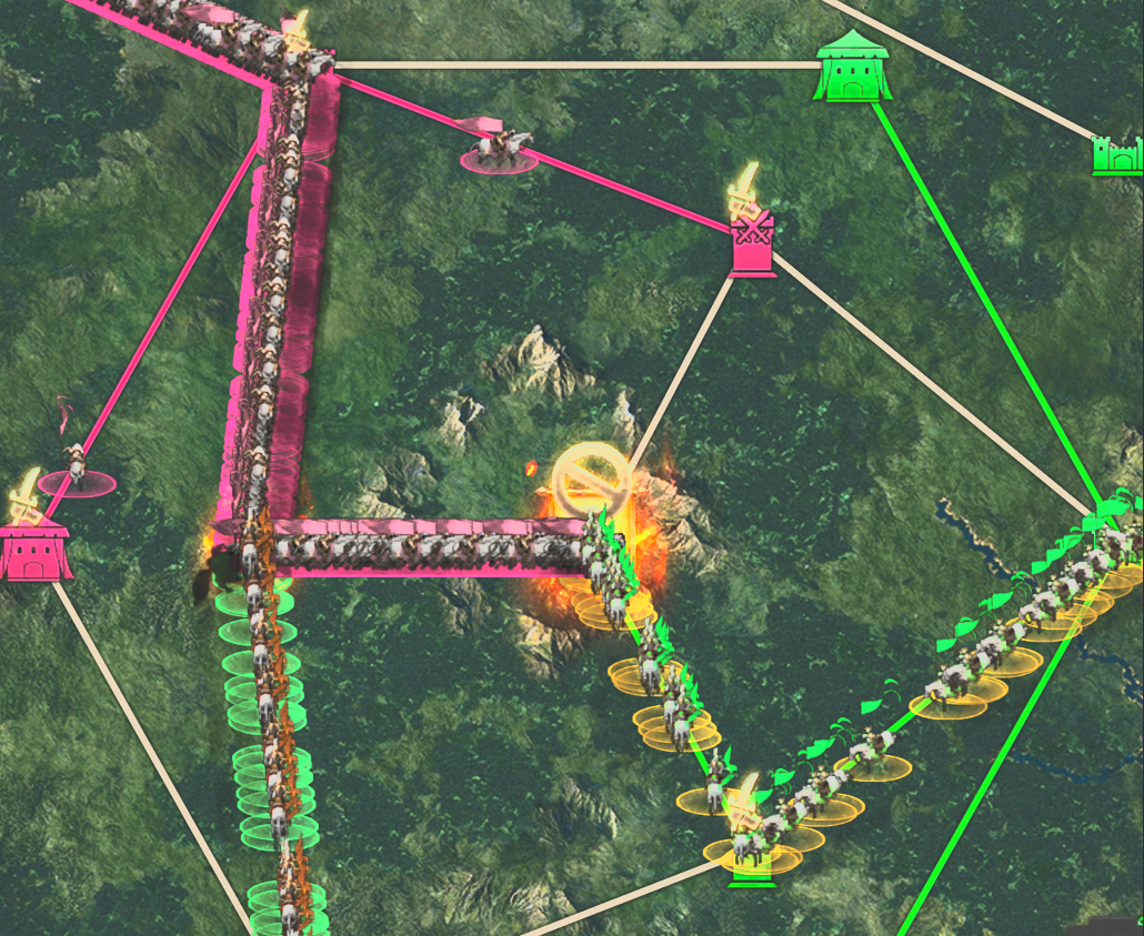 The battle starts! And the first to fight through the enemy's reinforcements is the mighty UR CaNDY. He slashes through their defence with ease, making a path for our reinforcements to stack inside the city.