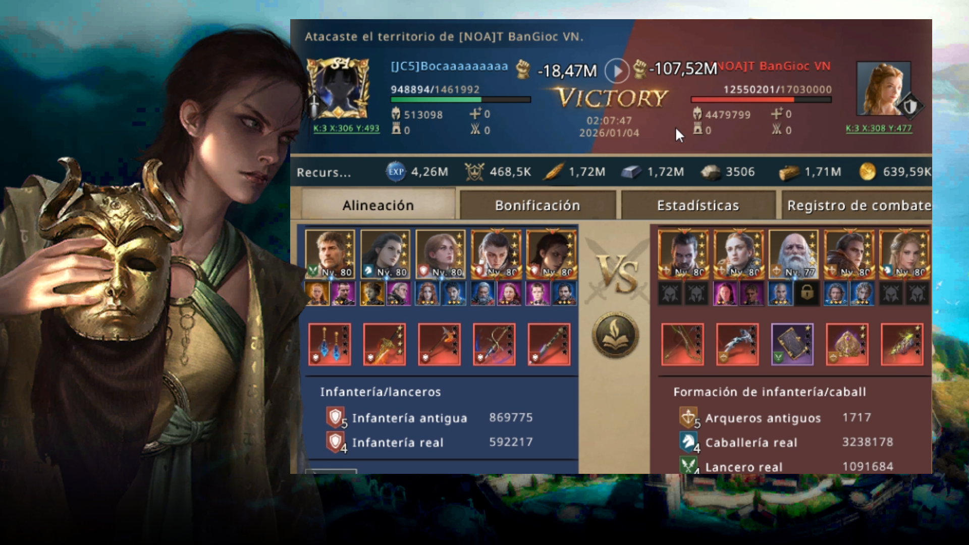 Those victories gave him enough points to now maintain a much larger lead over the enemy kingdom. In fact, it was the only battle fought in the war between the two kingdoms. The losses they suffered at the hands of THE WICH and Boca meant that they were practically limited to gathering resources, taking only a few Great Cities with small vassals, but there was no attempt to attack K492.
