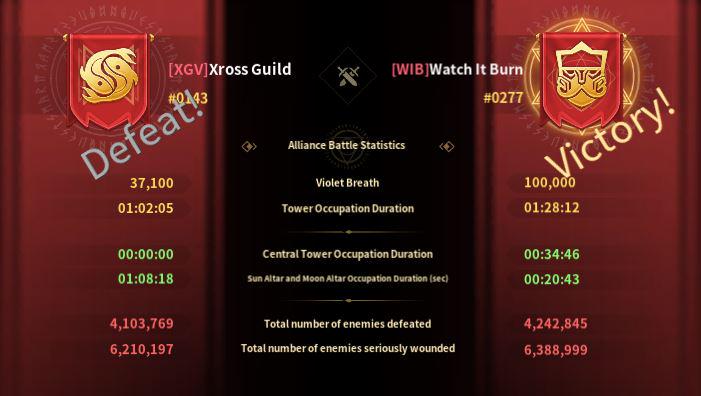 XGV sent two players to the Moon Altar and one player to the Sun Altar. WIB didn’t send anyone to either altar. In my opinion, this is a waste of XGV’s time. Altars do not generate points and are really only useful for making counterattacks.