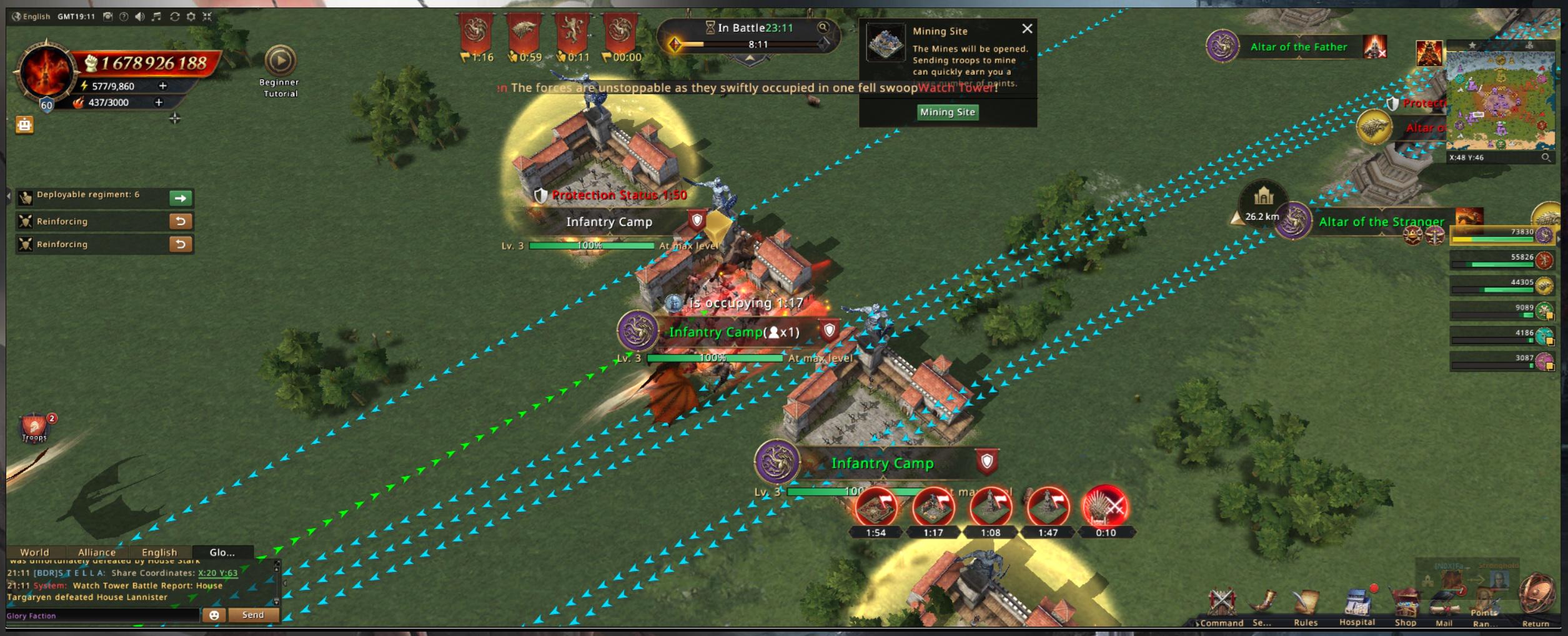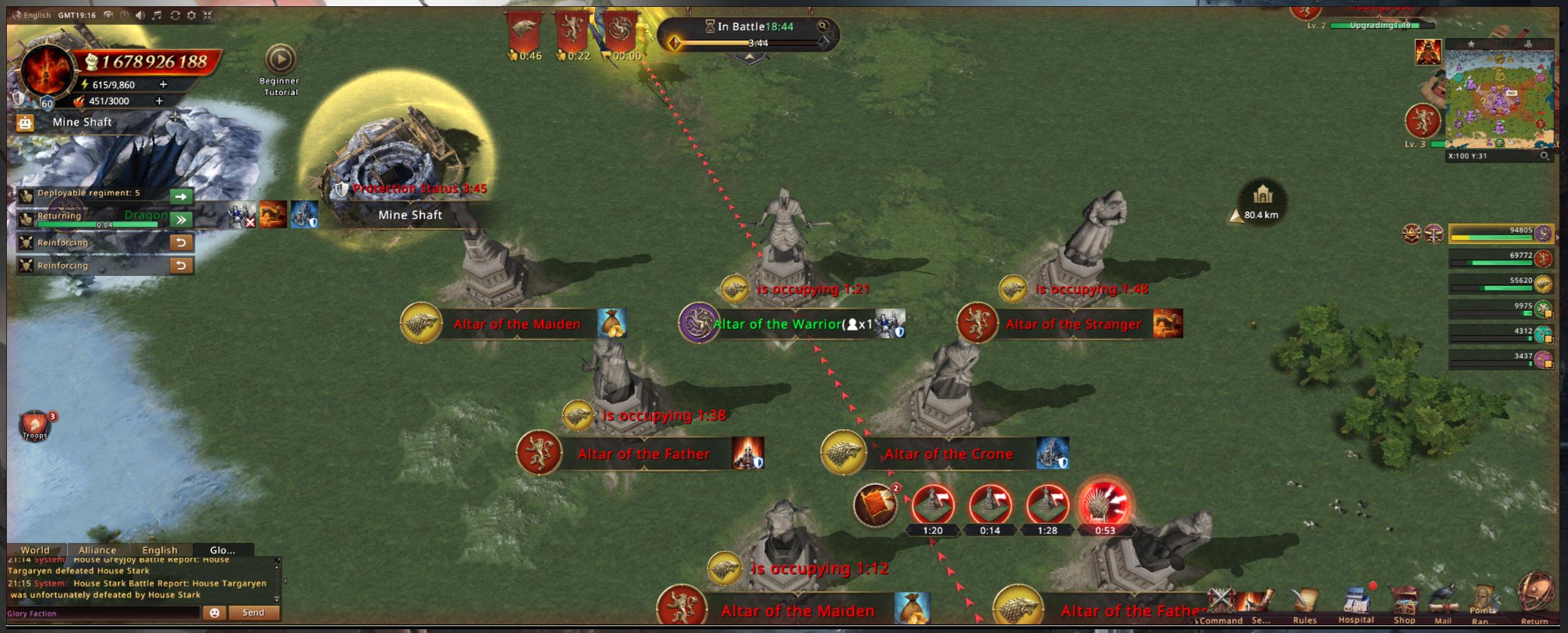 Quick math time. Each of our marches is roughly 900k troops. We can bring about 3 million total. Three houses means we are already stretched thin, and we are mid transition between our original house and a new one captured. With almost all out troops blocked. No flexibility for anything else. That translates into: We're vulnerable everywhere else.