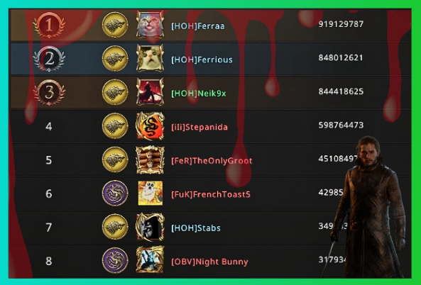 The Glorious Battle fought by HOH alongside other alliances such as FFS was not going as hoped, and it seemed that third place in the overall ranking was now guaranteed for them.