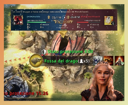 A few seconds before the end, another attempt by the Targaryens, this time by FrenchToast5, was very different. The rival's Bleeding-Inf formation was of the highest level and inflicted considerable losses on the defender, but thanks to the support sent by the Starks for their comrade, their numerical superiority played a key role in defending possession and completing the conquest!