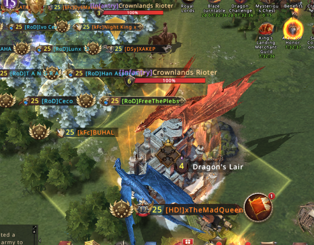 FreeThePlebs was one of the first who saw the message of the attacks. She alarmed the alliance, but it was already too late, nothing could be done. xMad Queen was experienced warrior, once part of RoD, now deadly enemy. She knew very well the Art of war, how to protect herself and hide her soldiers, so even if she gets attacked, the enemy to can’t do anything to her. After the attacks she was standing next to Kings Landing, unbubbled and confident holding Ceco’s lord in the prison. Nothing could be done.