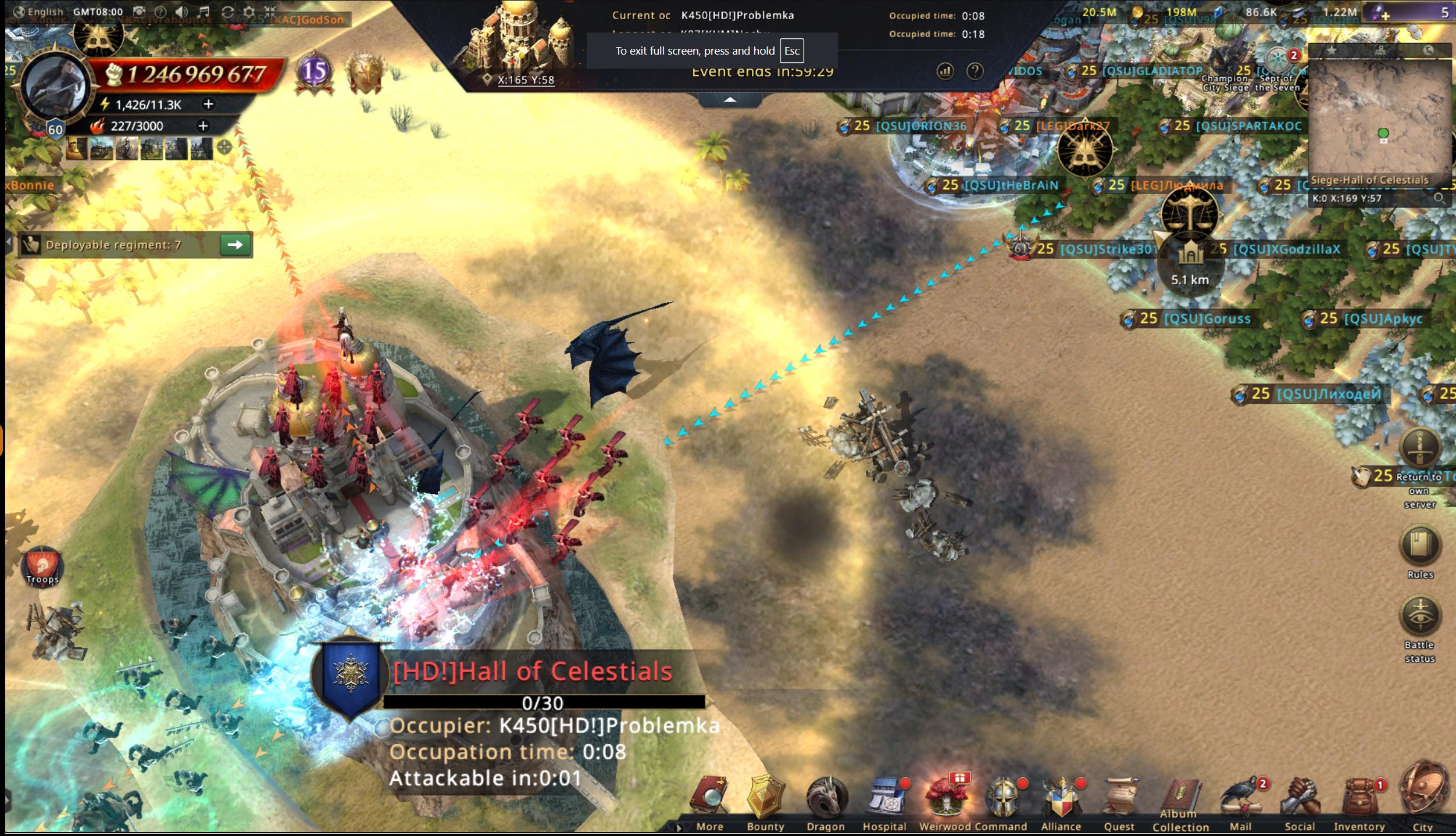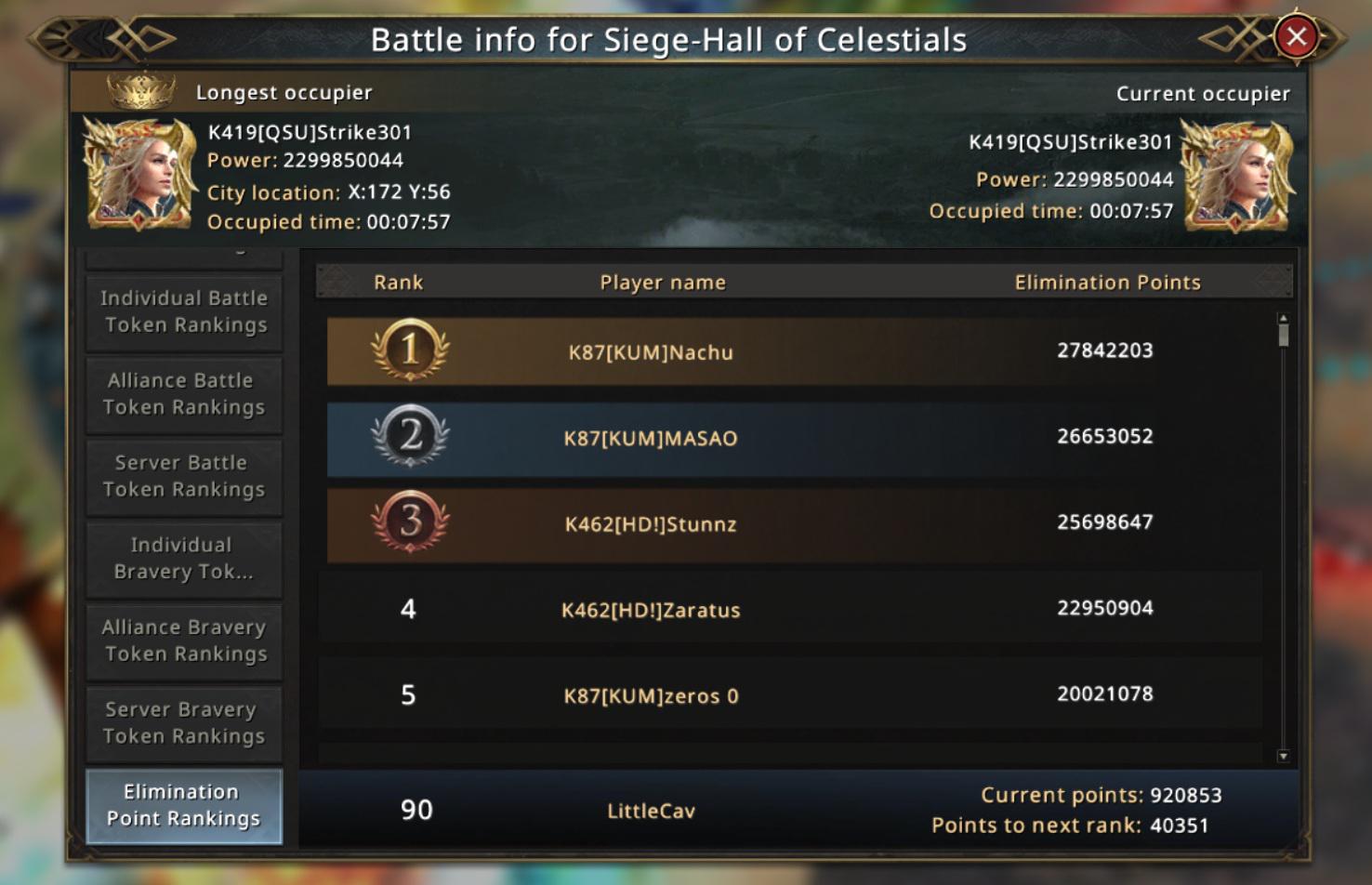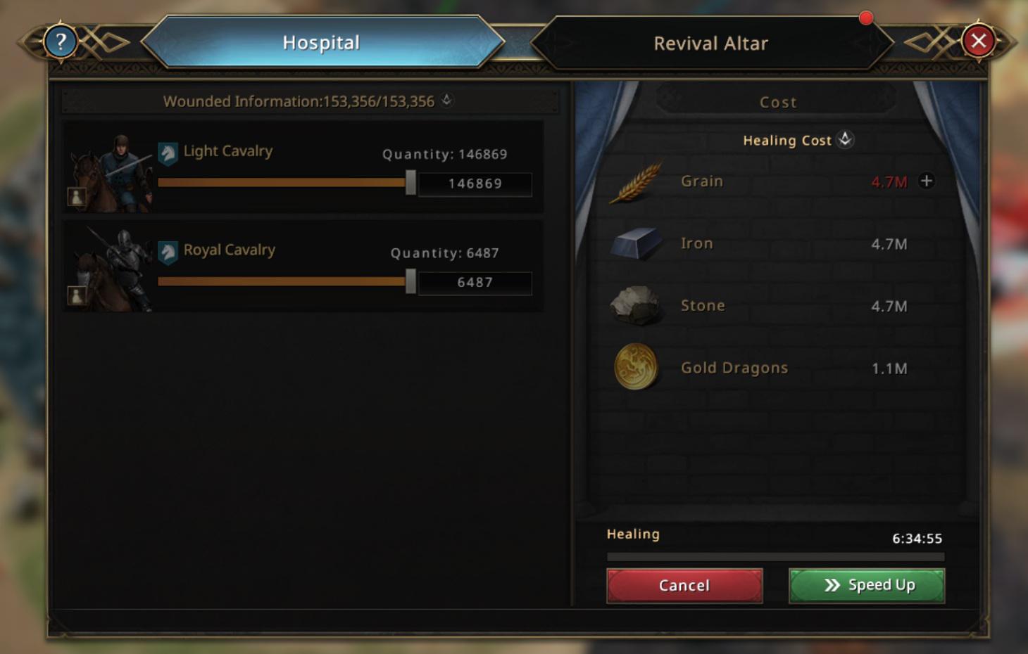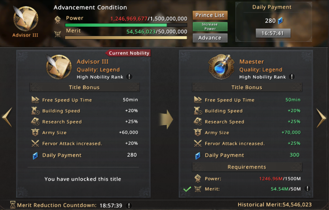 But before we move forward... my alt is in a somewhat delicate situation, namely, I'm not troop heavy. Lord of Lords just started, so I did not bulk up in Phase 3. More importantly, I am pushing toward 1.5B power for that final Nobility rank and the 10k army size bonus.