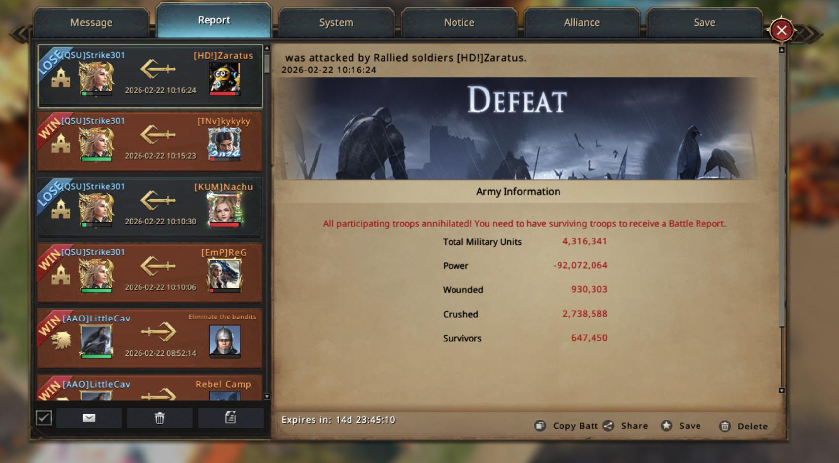 And the second one wipes me again. Amusingly enough, it kicks Strike out entirely. Amusingly because it's Zara, running Inf, knocking out Strike, who's Cav.😅