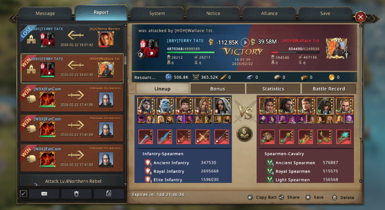 And with that mindset, the only real difference going in was... army size? My main has a significantly larger base march, and with a 50% buff the difference compared to my alt is noticeable. My dragon is far stronger too… though only optimized for Spear. And I had a feeling tonight that dragon would not matter much.