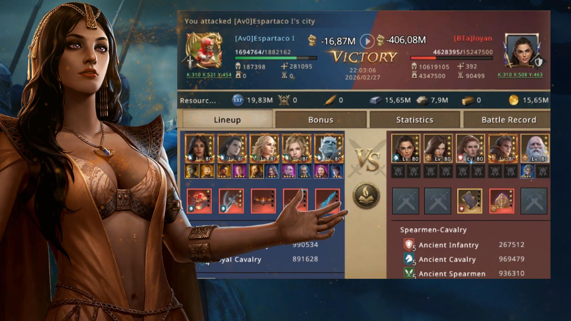 That kingdom is larger and has the BTa hive, there are also people from WxD, many strong warriors, and some of them have a blue dragon in their possession. The target to be hit did not belong to that alliance, but they assumed it was a vassal. Spartacus, who uses cavalry, like Karlitoz, jumped and hit that target and another one that was next to it, and also took advantage of looting resources that one of them had.