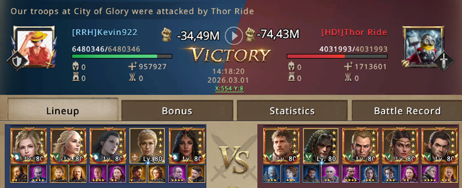Looking at this match, I am no longer surprised at how easily we are taking over the City of Glory. Everything is working today. A quick attack and then quick support. That's how it should be. We earn our second Supreme Conqueror badge. Now we have to hold on to it, although I don't know if the opponent has already given up and all that's left is the fight for 2nd place.
