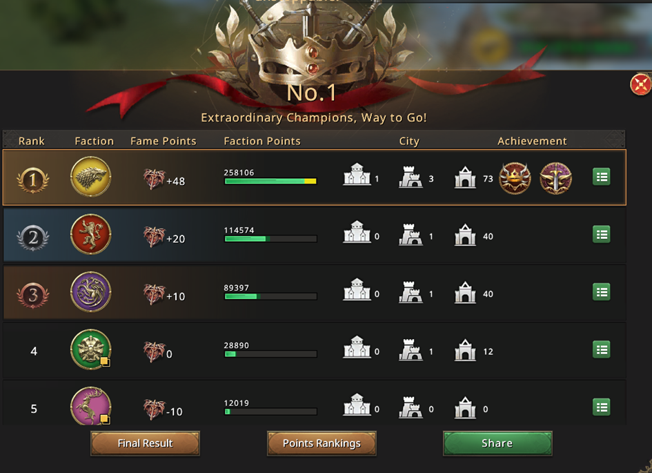 Tactics were the most important thing in this game. There wasn't much fighting. The opponent wasn't that challenging this time, but even if the fight was for City of Glory or if we hadn't captured that building, we would still have taken first place. I hope I'll have a few more games like this this season.