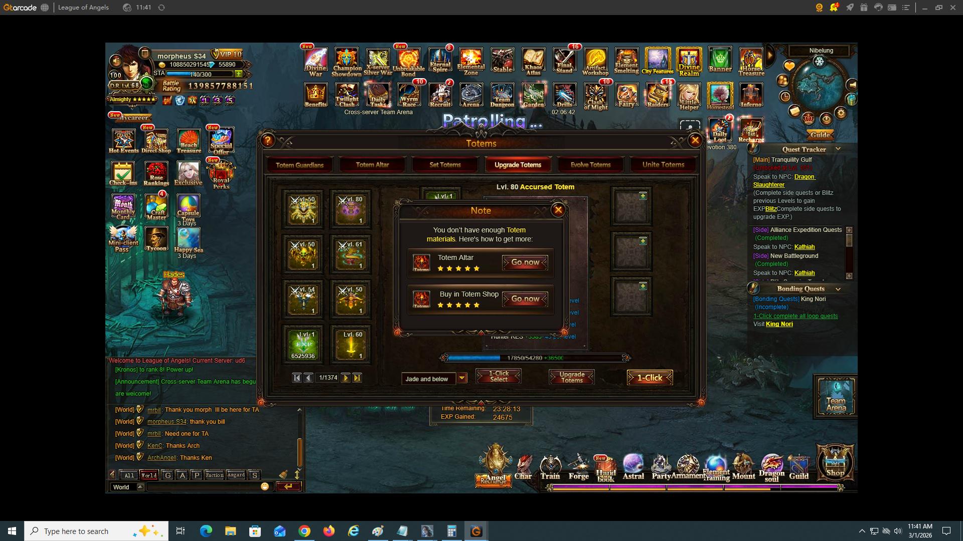 Hello , tried to upgrade totem got message "not enough material" but I show over 6 mil of the Universa
